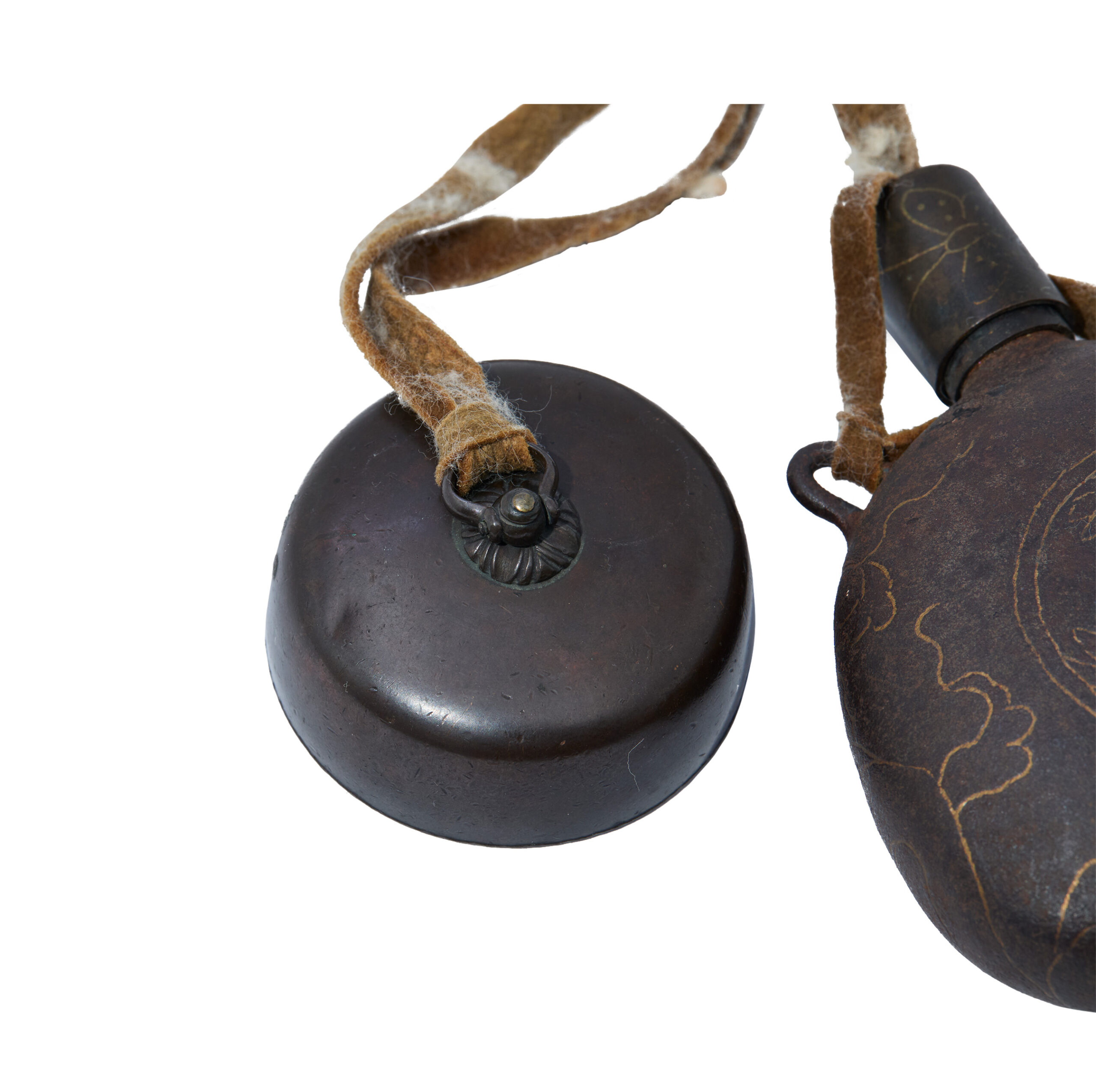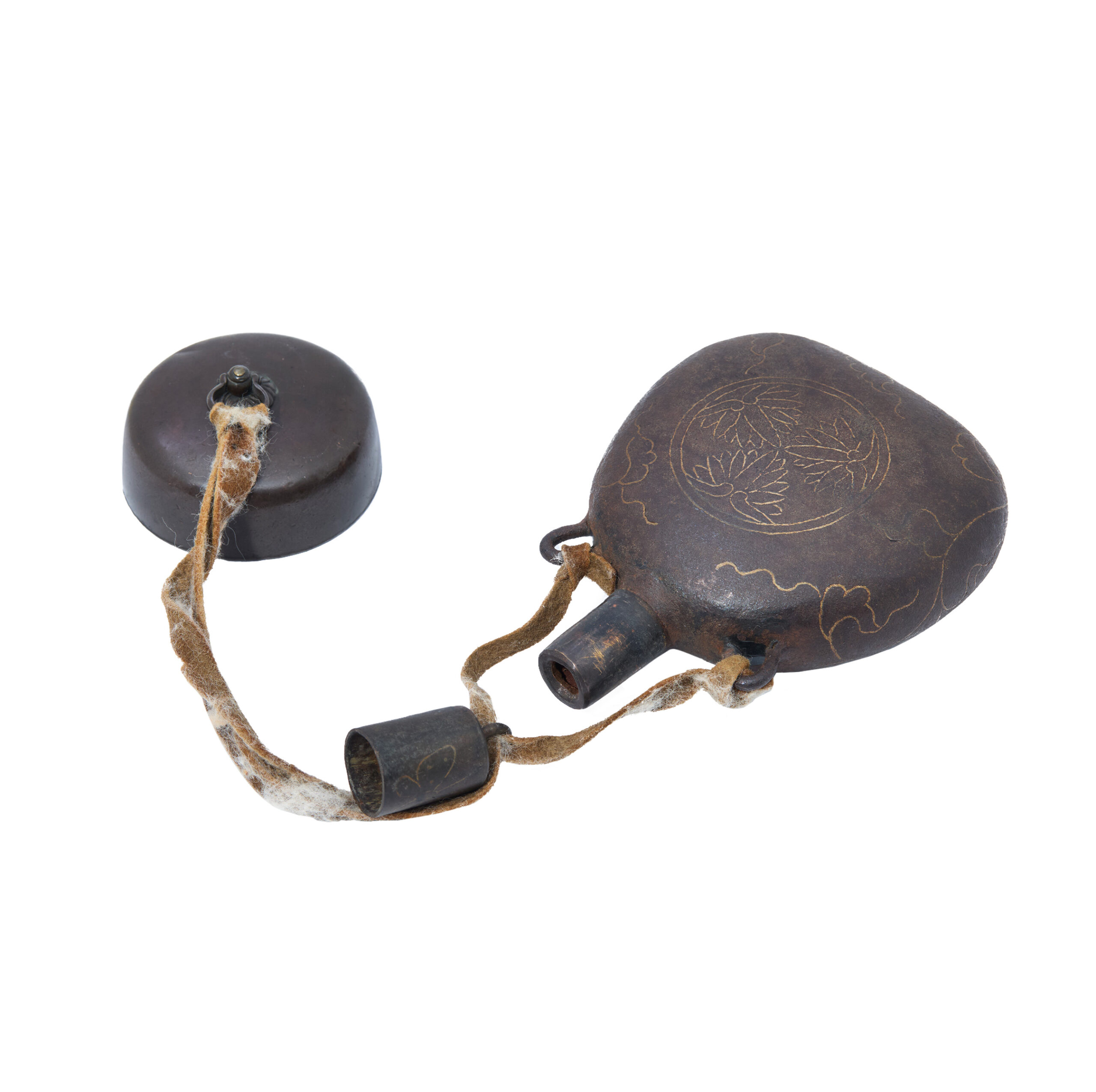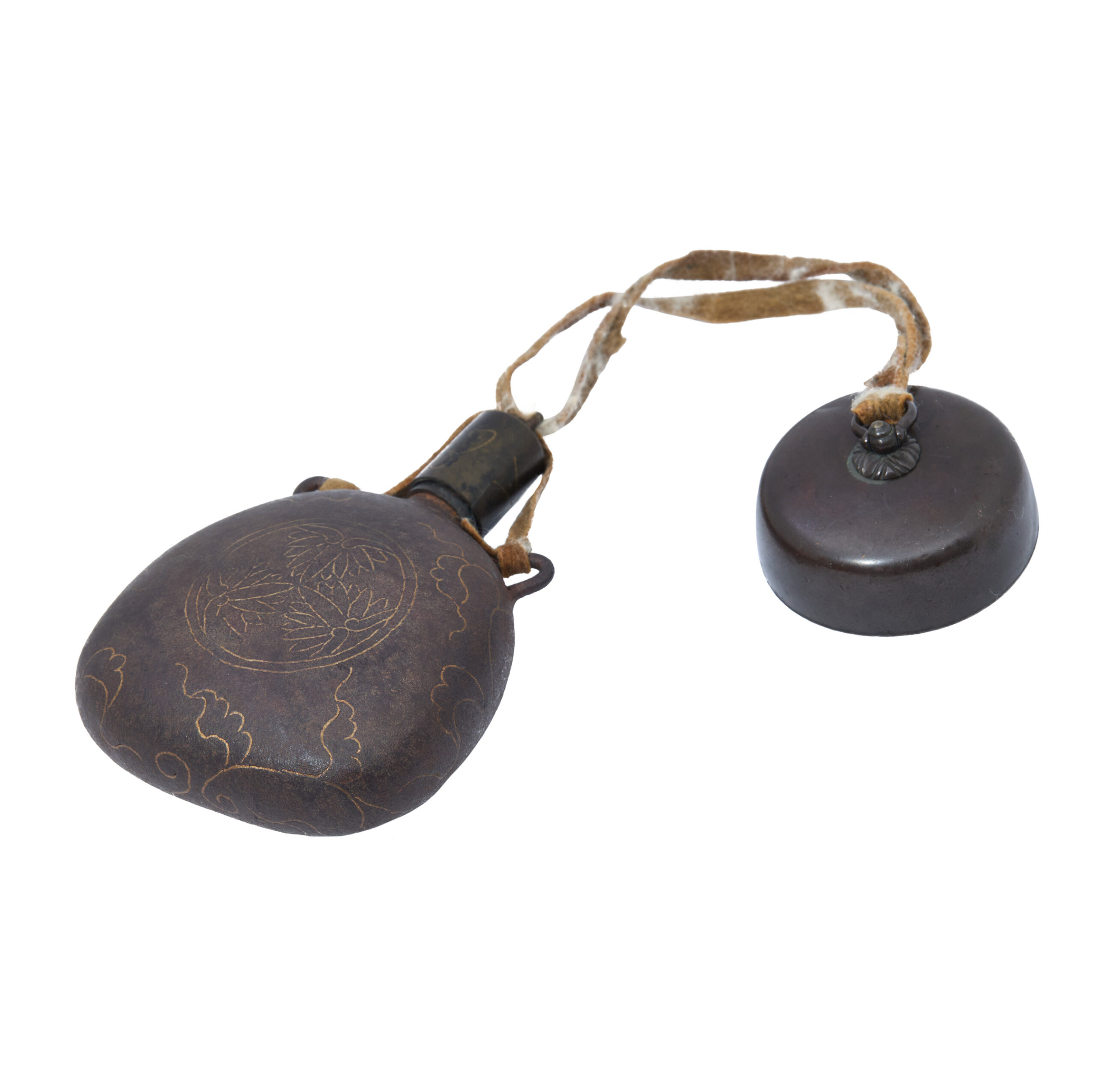 This item is an antique Kayakuire (火薬入れ, powder flask). It is a small container to store gunpowder. In Japan, powder flasks were made from developed materials and produced with advanced techniques. Some of them were gorgeously painted with lacquer. We estimate this powder flask was made in the Edo period or later.