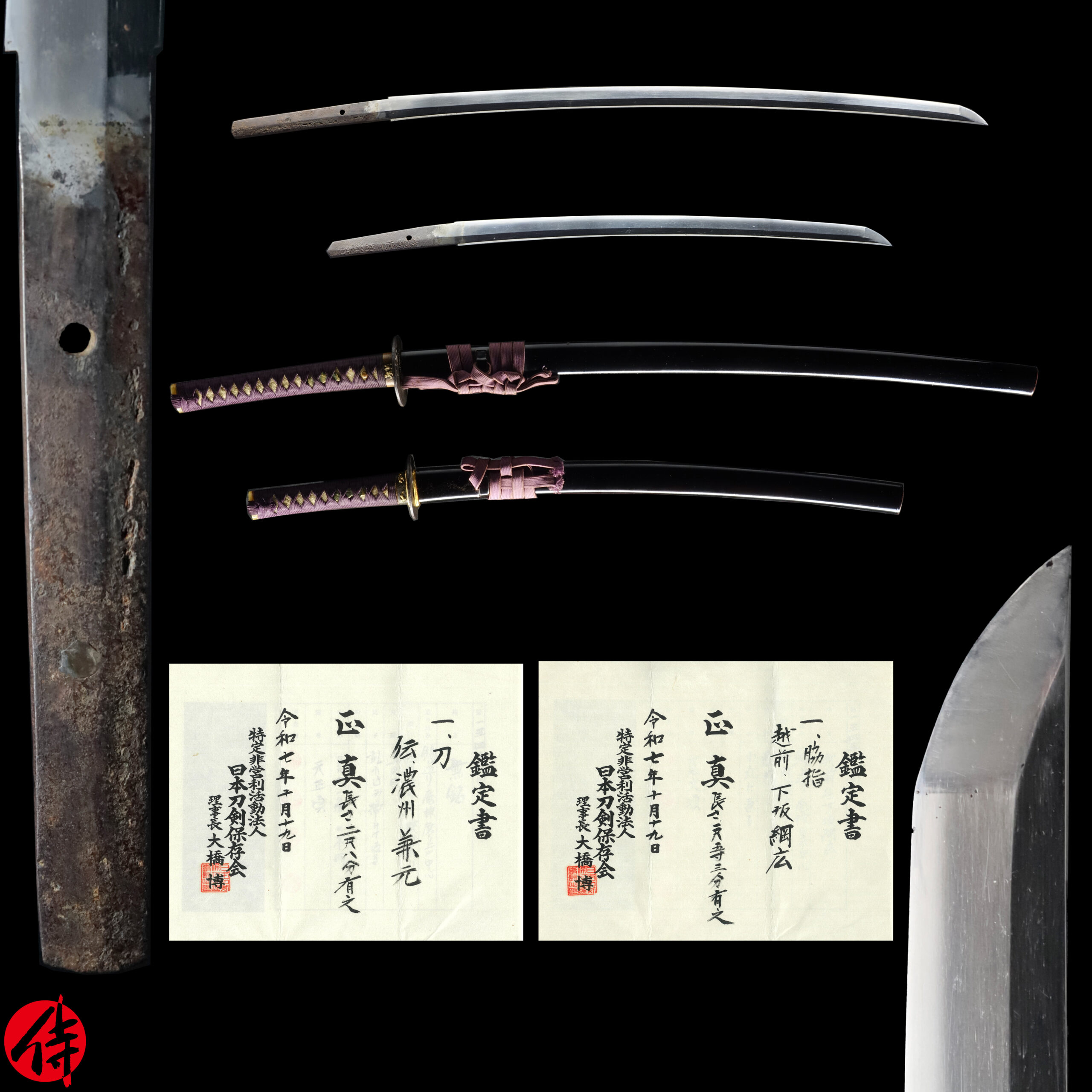 Antique Japanese Sword Daisho attributed to Kanemoto and signed by Tsunahiro with NTHK Kanteisho Certificate
