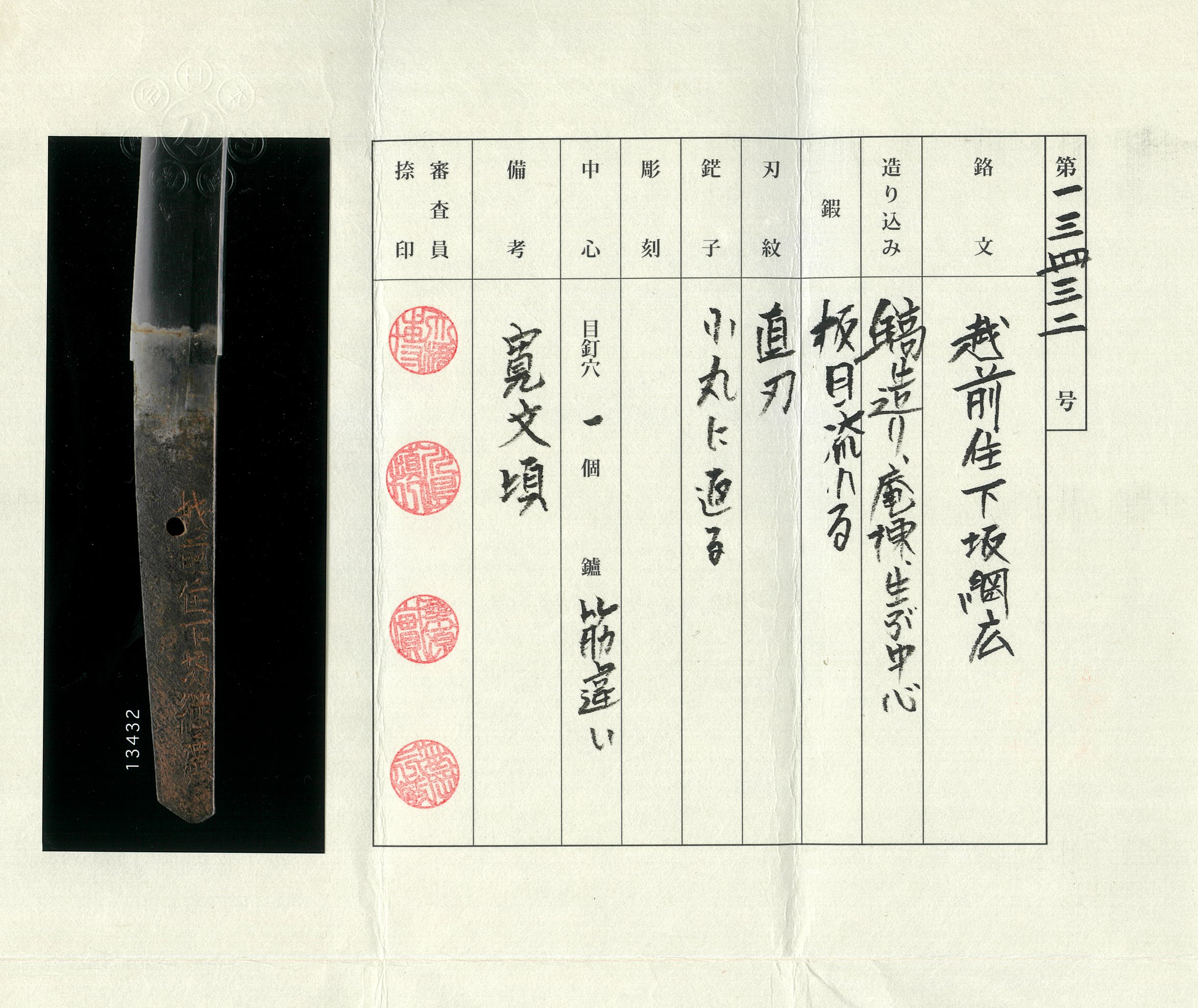 Each Japanese sword is registered under the Agency for Cultural Affairs and the Board of Education in Japan. They issue a registration paper for each Japanese sword for its owner in Japan to legally possess it. The Japanese sword with its registration paper means it was traditionally hand-forged in Japan.