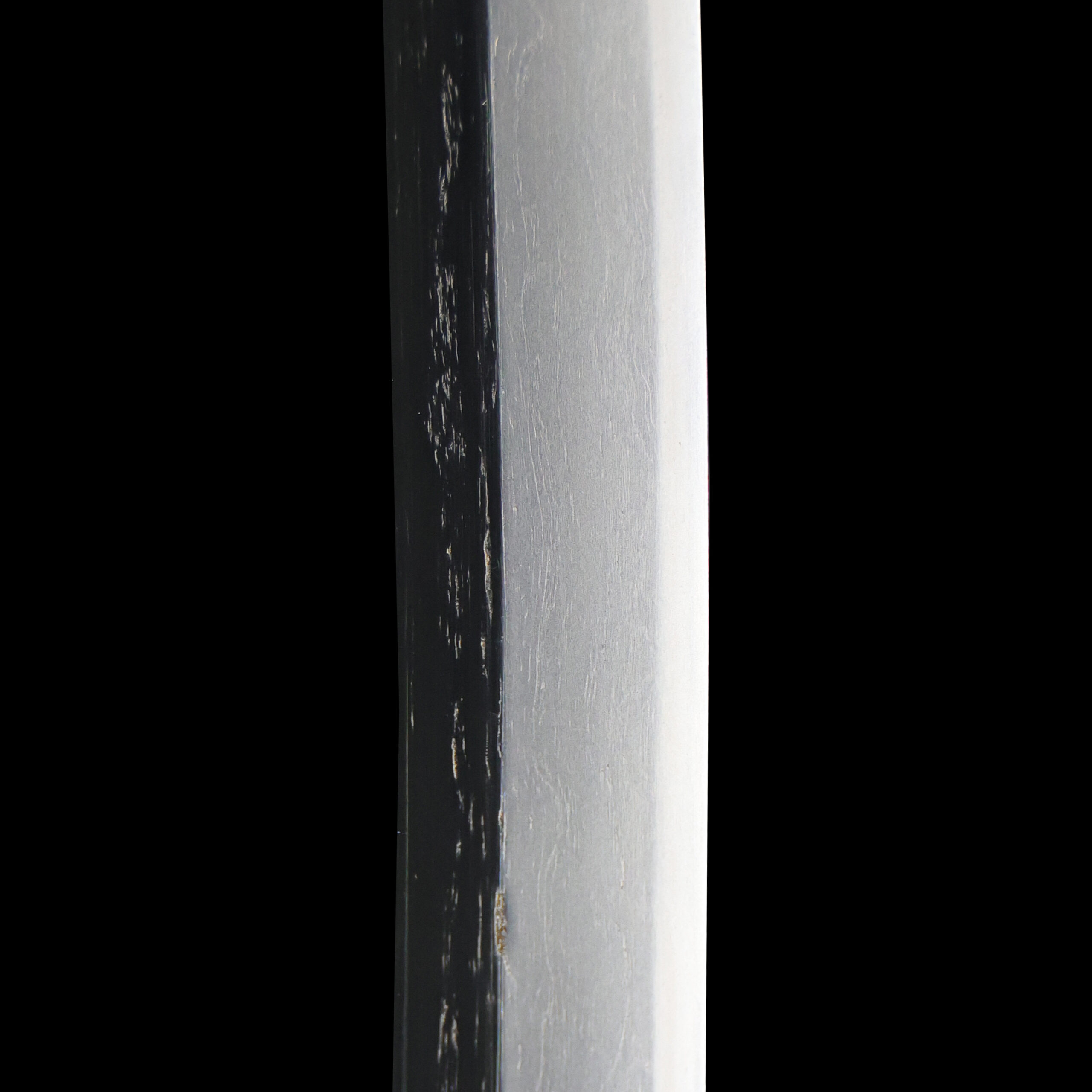 This blade is attributed to Ko Naminohira (古波平). Naminohira (波平) was one of the most influential schools in the Satsuma domain, founded by a YAMATO-DEN swordsmith, Masakuni (正國), during the late-Heian period (Late 12th century). They were known for having their smith name with one of these letters, 行 (Yuki) or 安 (Yasu). The Naminohira swords were cherished among Samurais in the marine army, mainly because the name Naminohira (波平) means “Tides are quiet” in Japanese. Blades forged by members of the Naminohira school have strong characteristics of YAMATO-DEN (大和伝), one of the five Japanese sword-forging traditions.