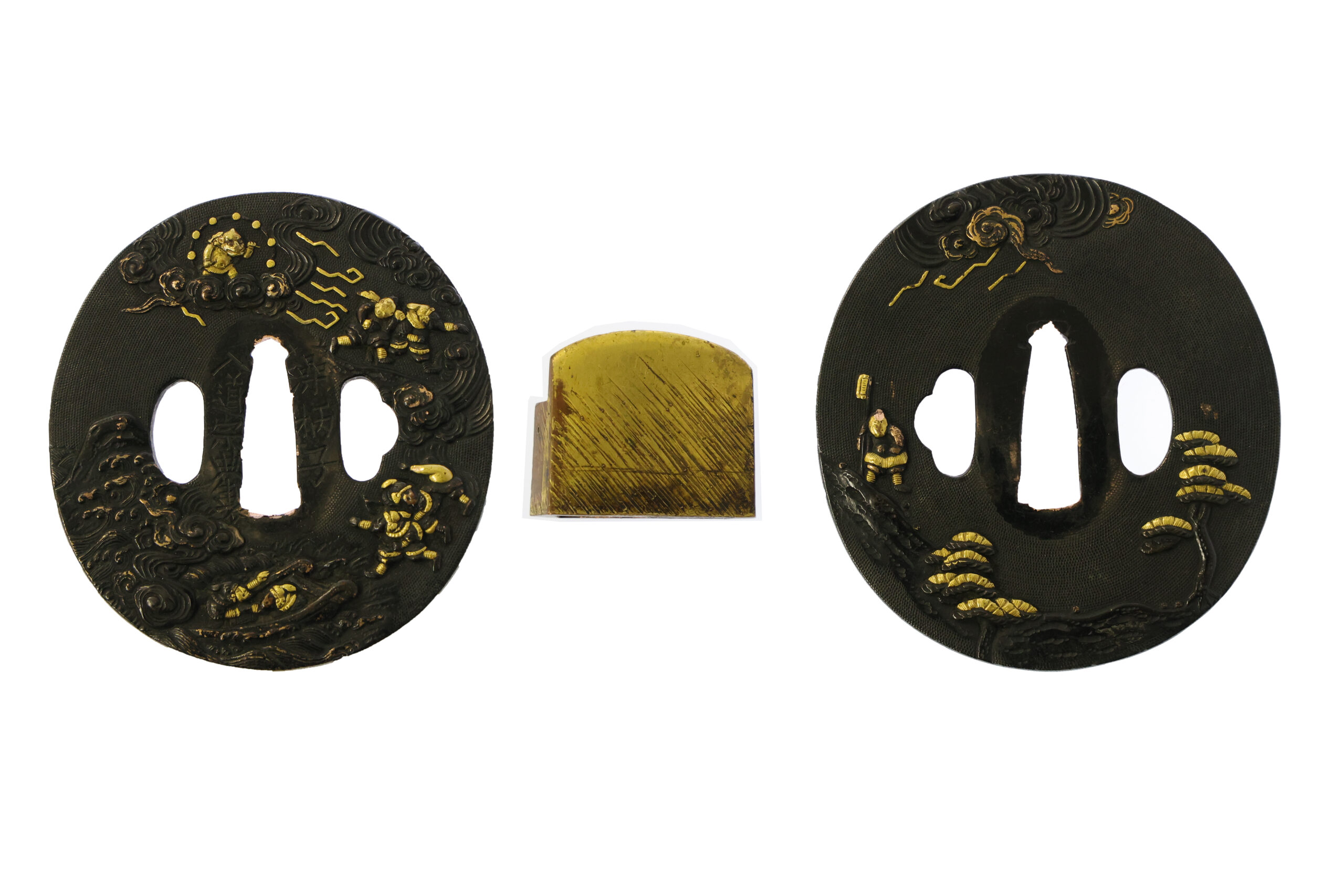 Fuchi-Kashira:A pair of matching sword fittings that cover the upper and bottom parts of its sword hilt.