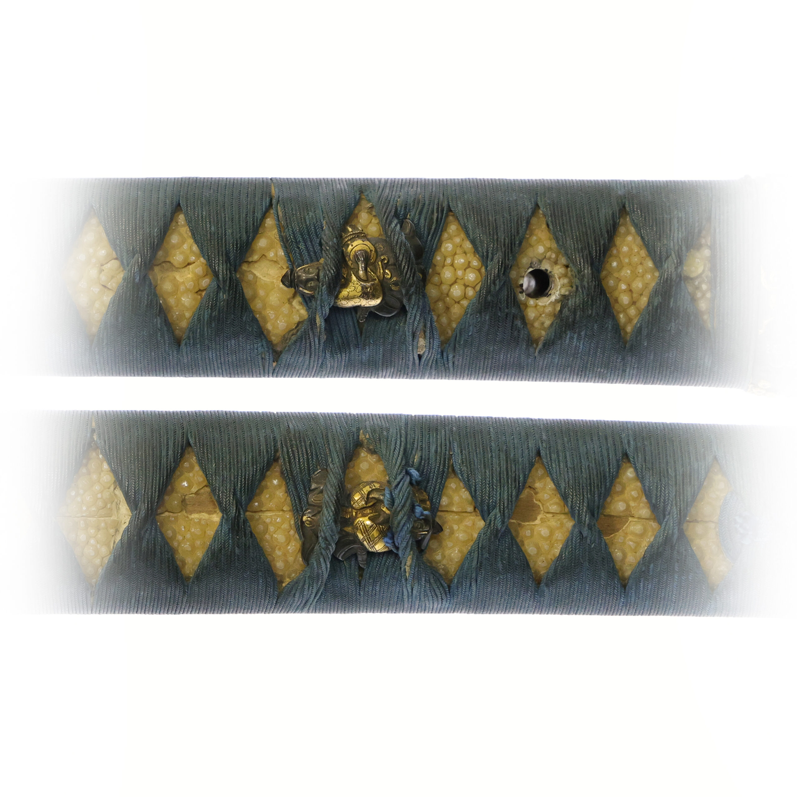 The Saya of this Katana and Wakizashi are covered in ray skin. Ray skin is not only beautiful but also has a naturally textured surface, allowing it to function as a non-slip grip.