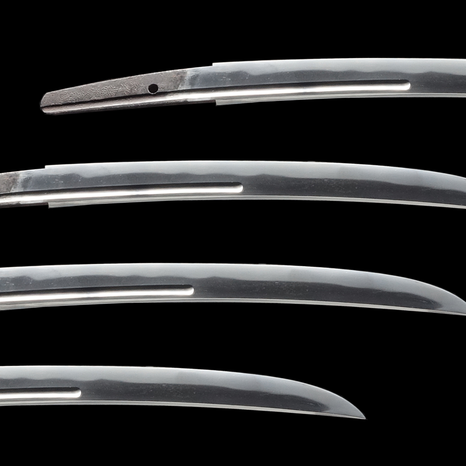 The origin of the name Naminohira dates back to the school’s foundation. It is said that the founder, Masakuni, was able to calm the waves by dedicating his sword to the sea when his school from Yamato sailed to live in the Satsuma domain. Since then, he began to use the title “Naminohira Yukiyasu (波平行安)” – “Tides are quiet, ’tis an easy way.” From the late Heian period until the end of Samurai times (Late 19th century), the Naminohira school maintained mastership for a thousand years. Ko Naminohira refers to works from the late Kamakura to the early Nanbokucho period (Early 14th century) of the Naminohira school. The swords forged in the YAMATO-DEN tradition are famous for their beautiful Jigane, steel surface, and straight tempering line (Suguha).