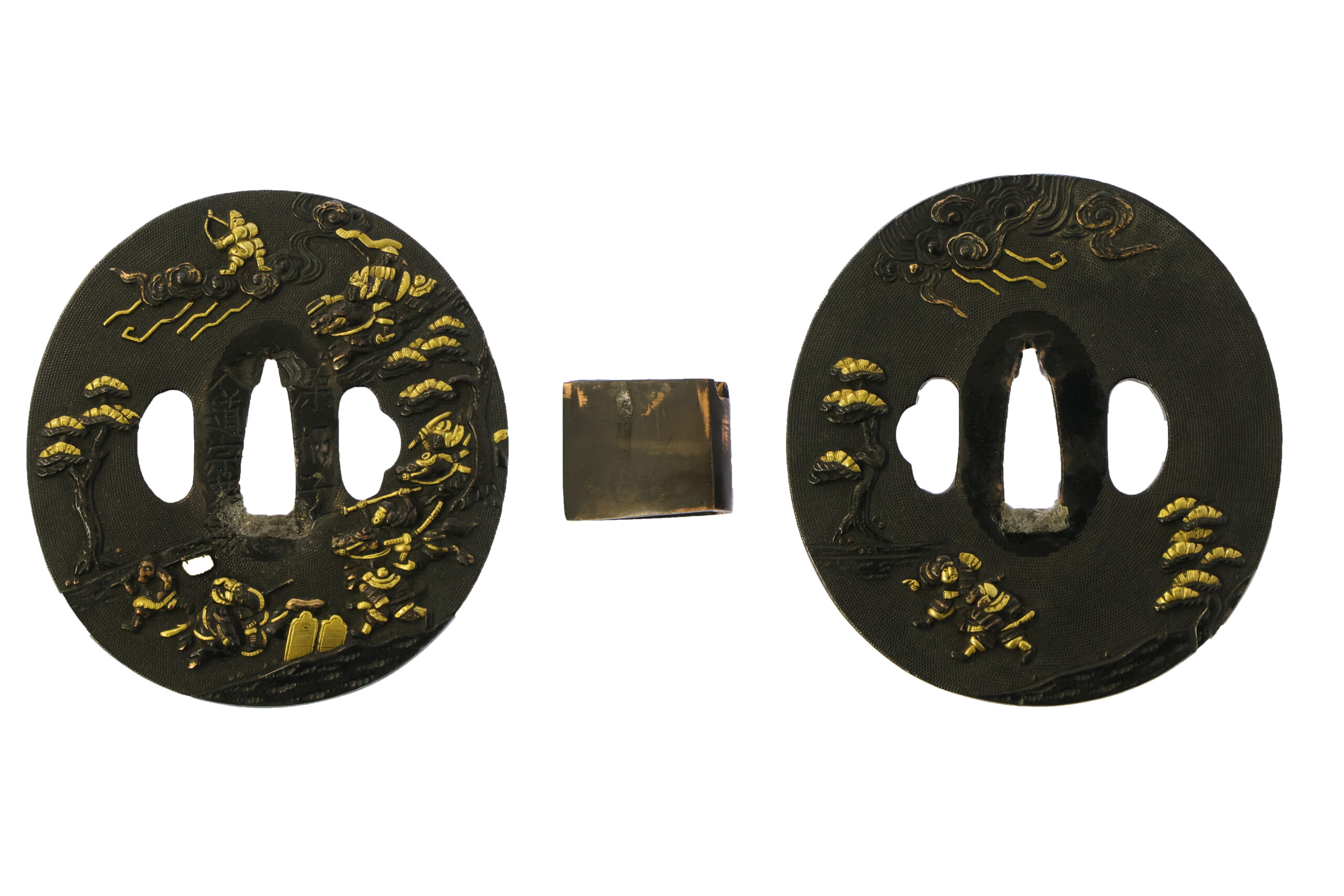 Fuchi-Kashira:A pair of matching sword fittings that cover the upper and bottom parts of its sword hilt.