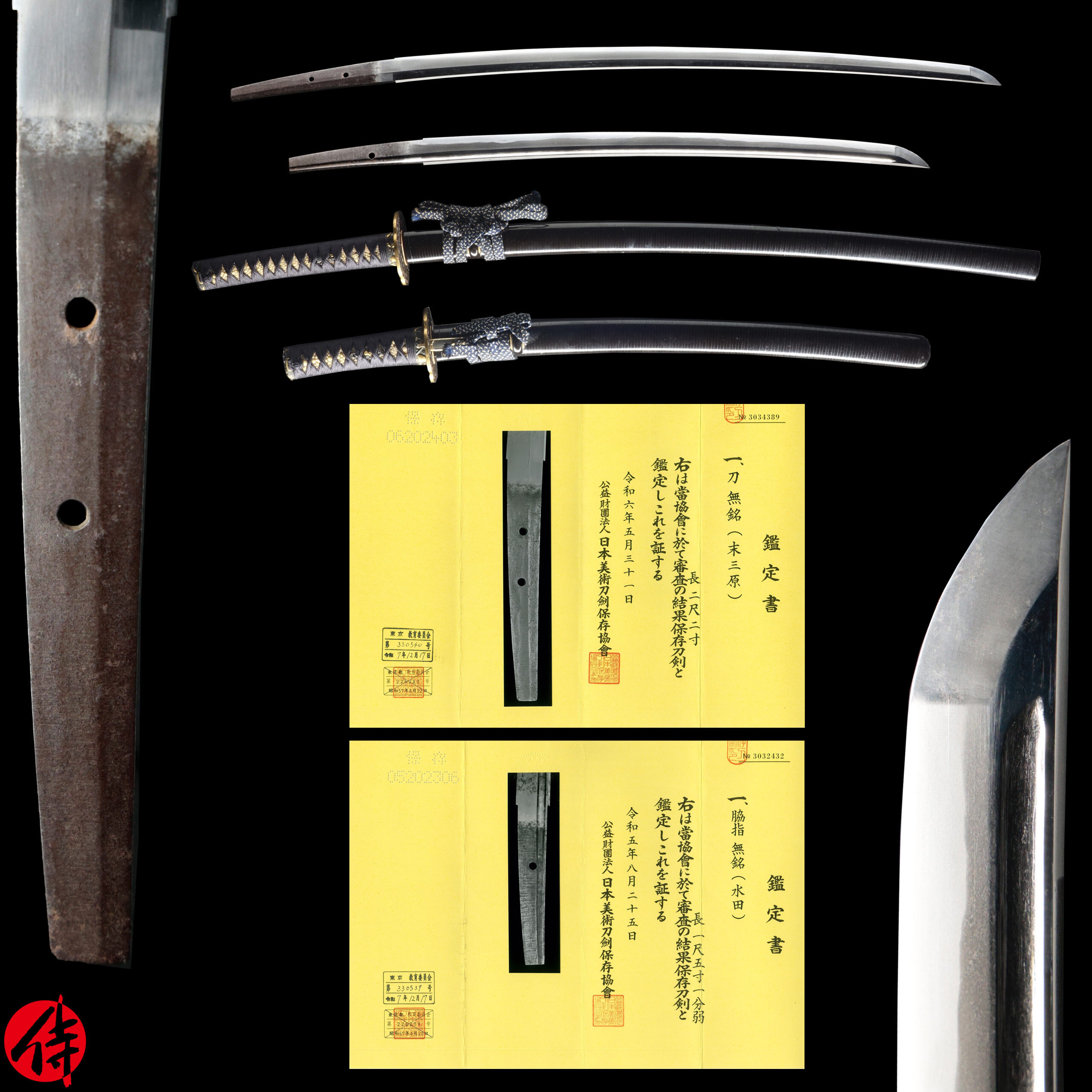 NBTHK, also known as Nihon Bijutsu Touken Hozon Kyokai (the Society for the Preservation of the Japan Art Sword), is one of the oldest Japanese sword appraising organizations in modern-day Japan. They authenticated the Katana on May 31st in the 6th year of the Reiwa era (2024). And Wakizashi was appraised on August 25th in the 5th year of Reiwa (2023). They appraised them as Hozon Touken, the blade worth preserving for Japanese society. The purchaser will receive these original certificates as well. We can also translate what is written into English and make a PDF file for your record if you request.