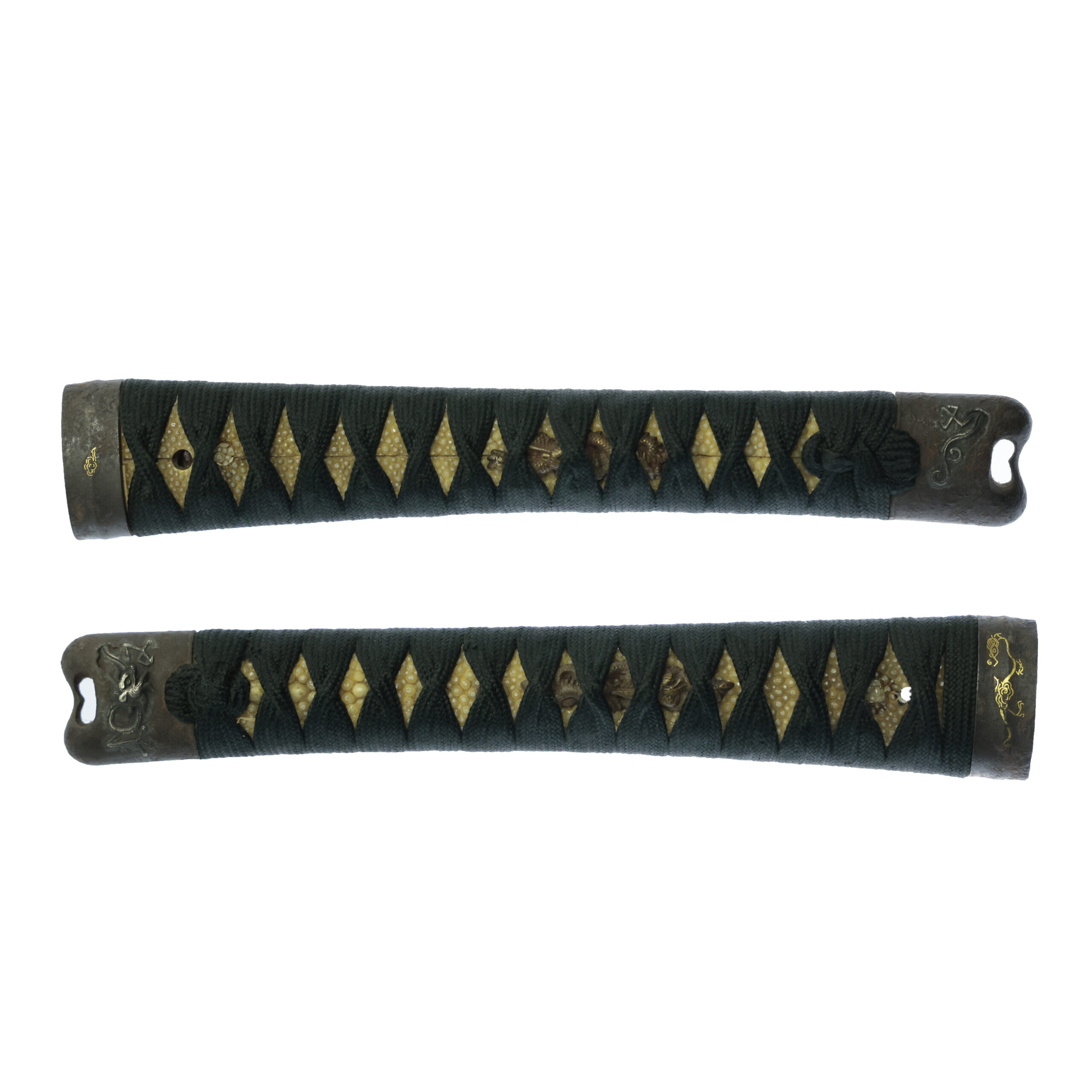 Tsuka and Menuki:Tsuka is the handle of the Japanese sword and Menuki is its decoration.
