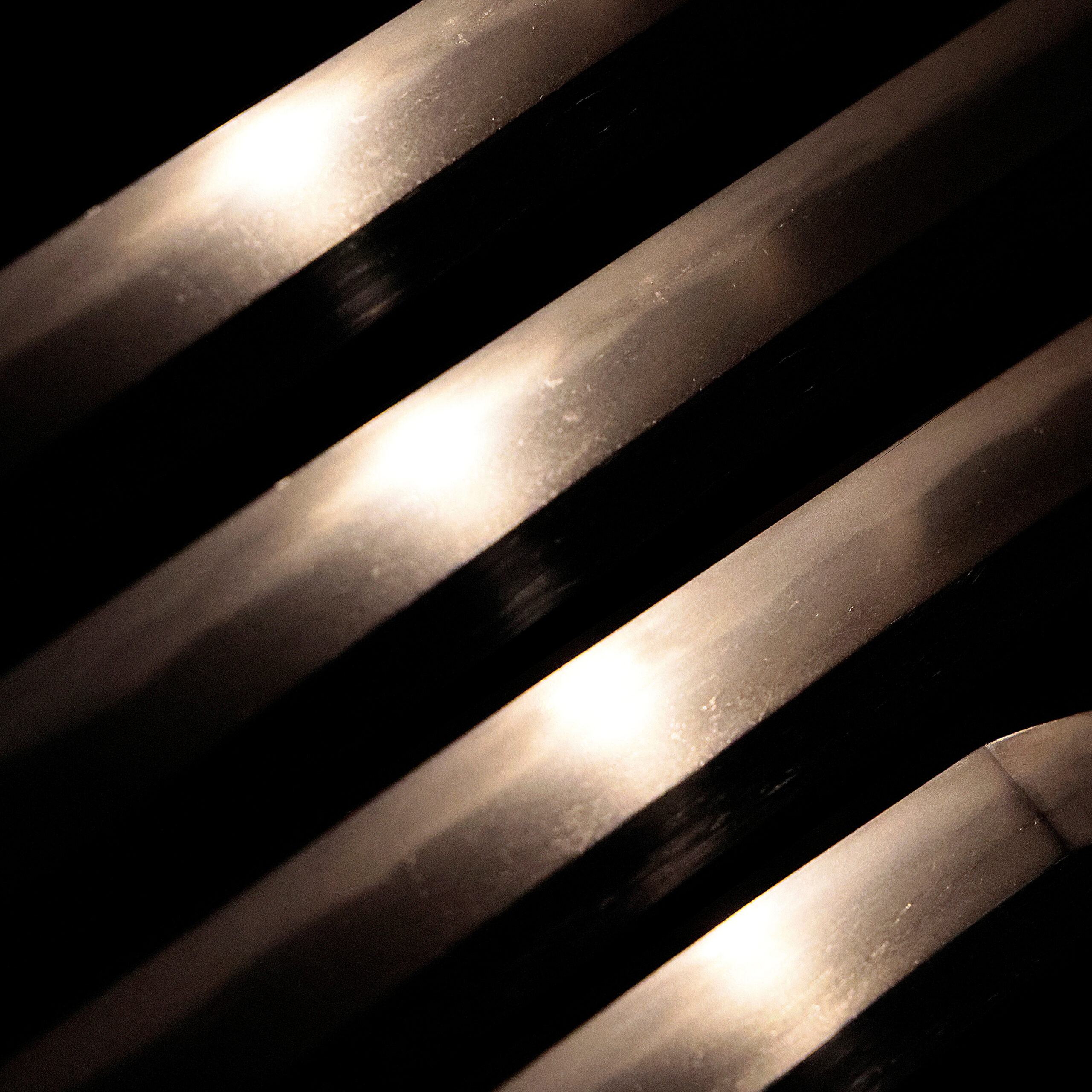 visible steel surface pattern created by folding and hammering during forging process