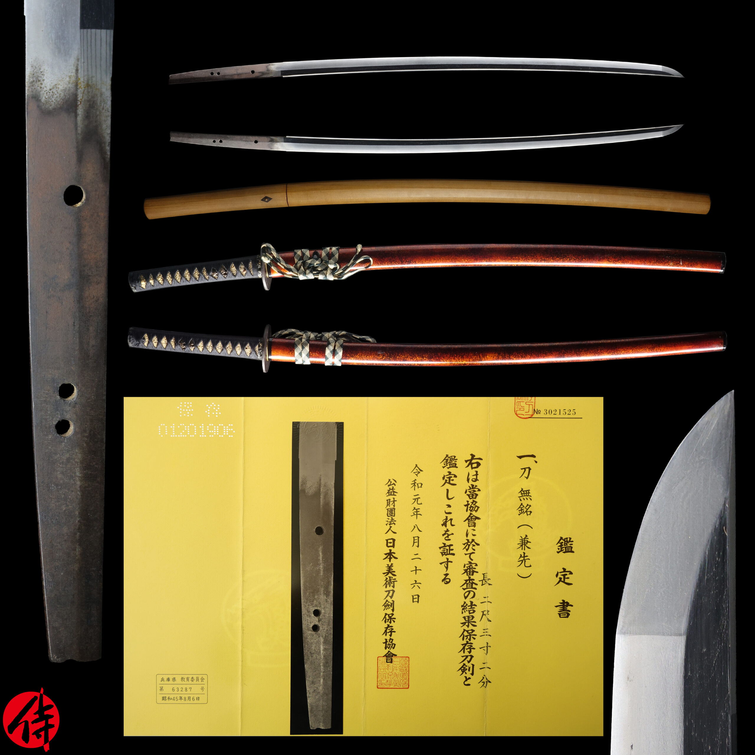 INCLUDED : NBTHK Tokubetsu Hozon Certificate,  Koshirae Mounting, Traditional Sword Carrying Case, Sword Maintenance Kit, Full Exportation Support