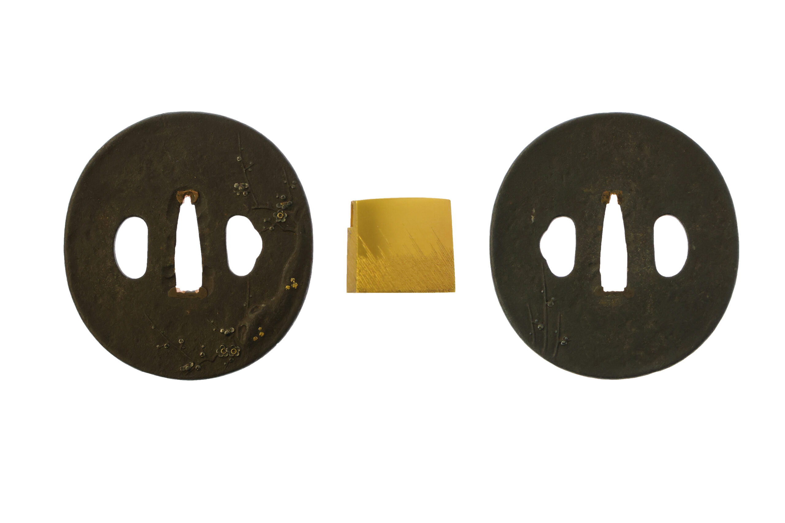 Fuchi-KashiraA pair of matching sword fittings that cover the upper and bottom parts of its sword hilt.