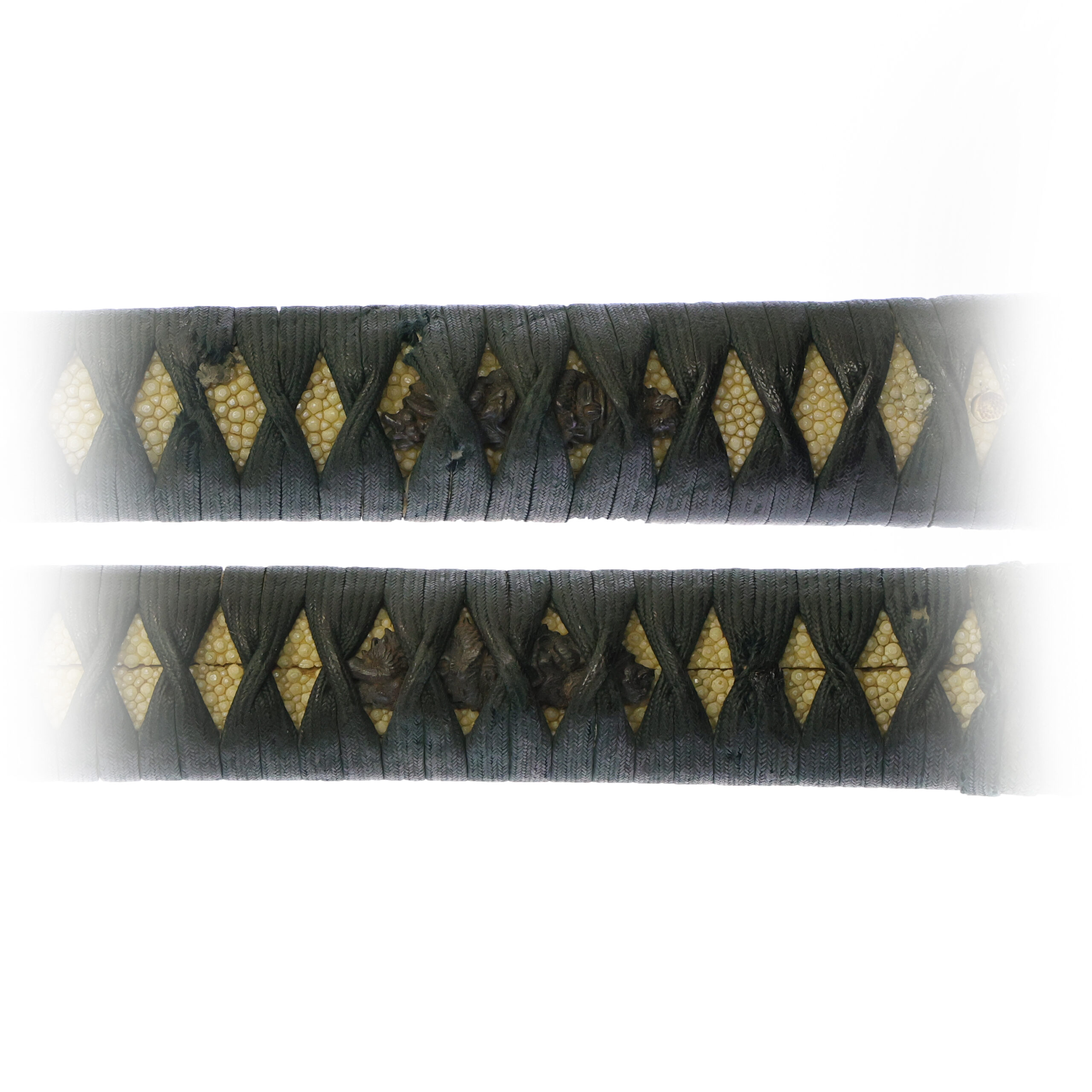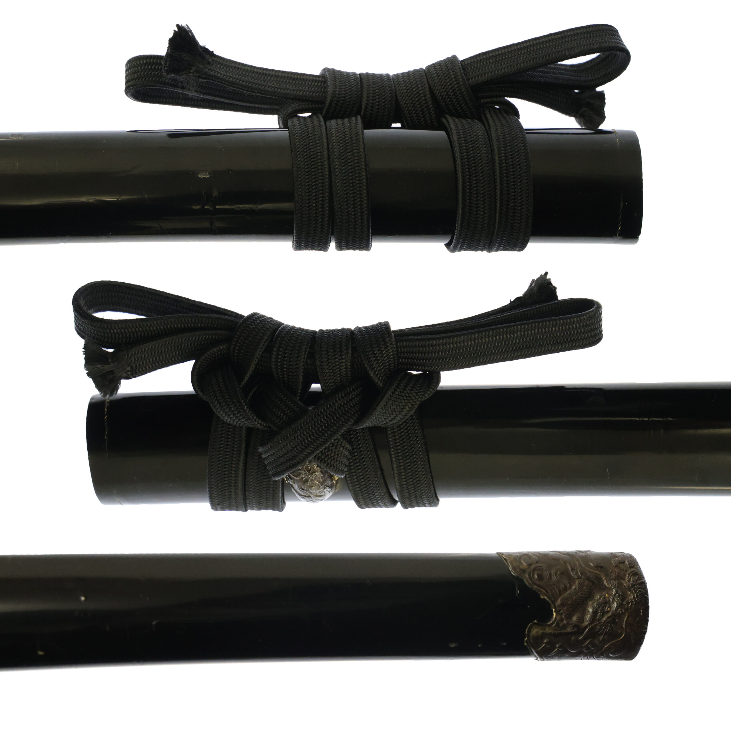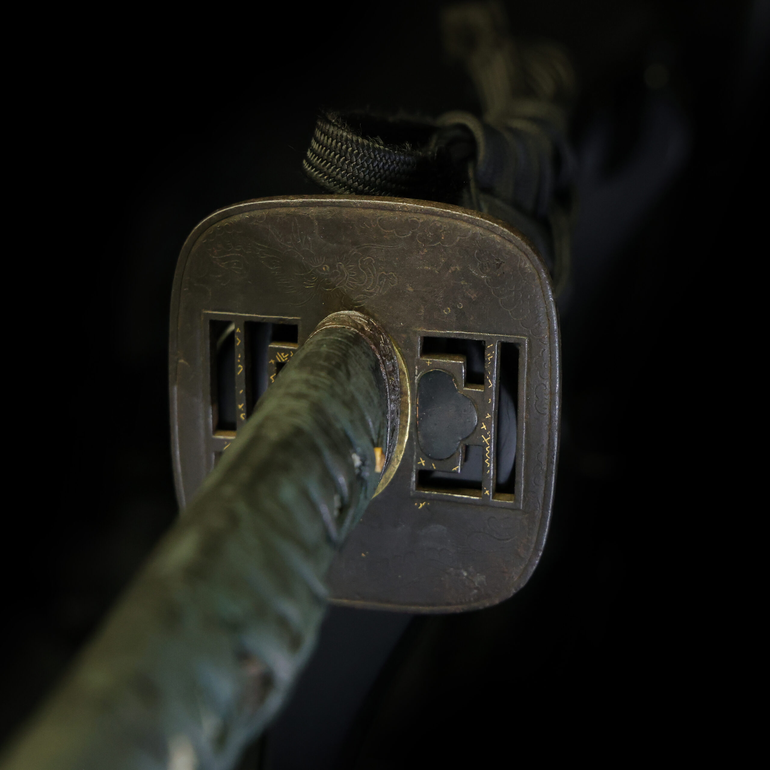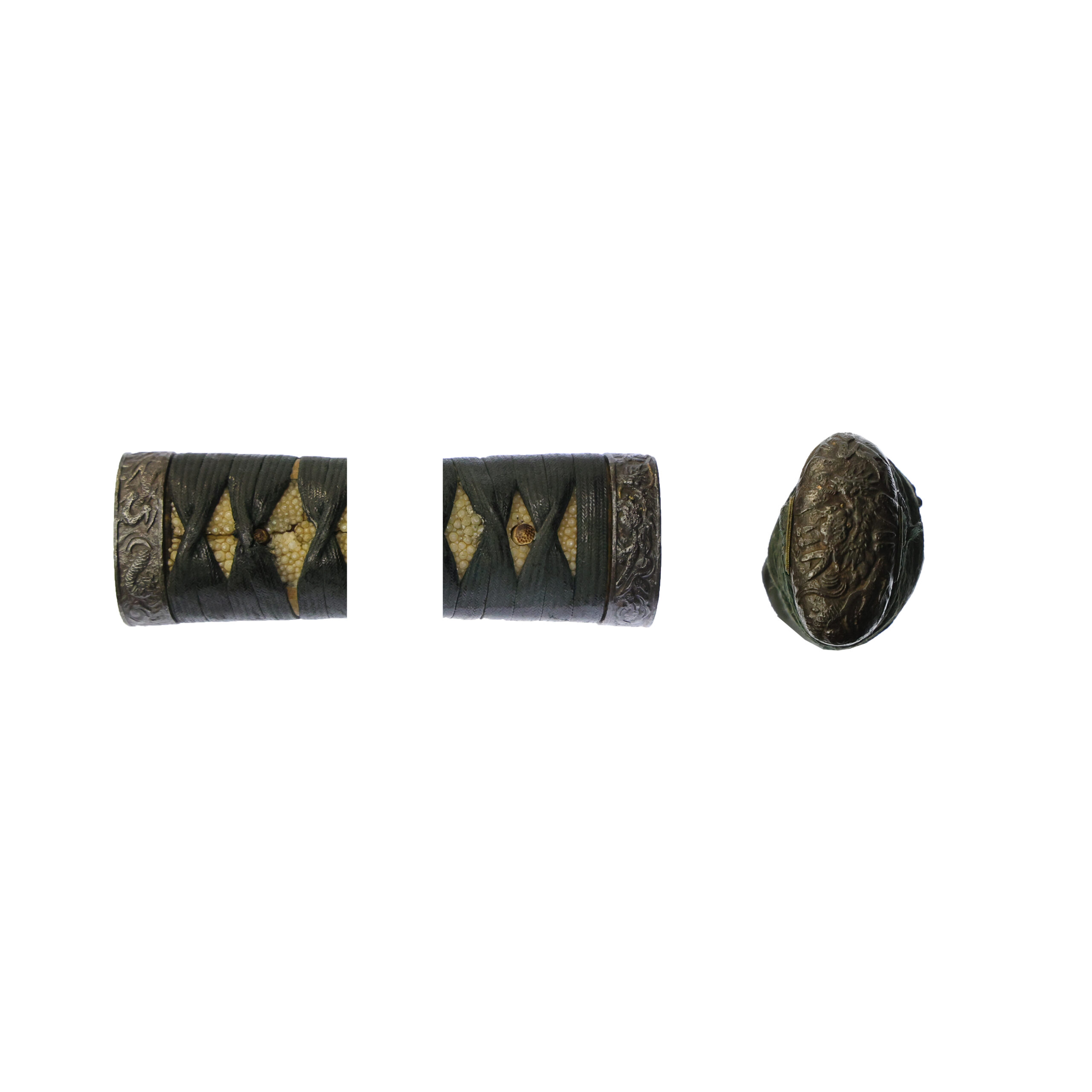 Also, the tip of the scabbard, known as the kojiri, is also decorated with a dragon motif, consistent with the other elements of this koshirae.