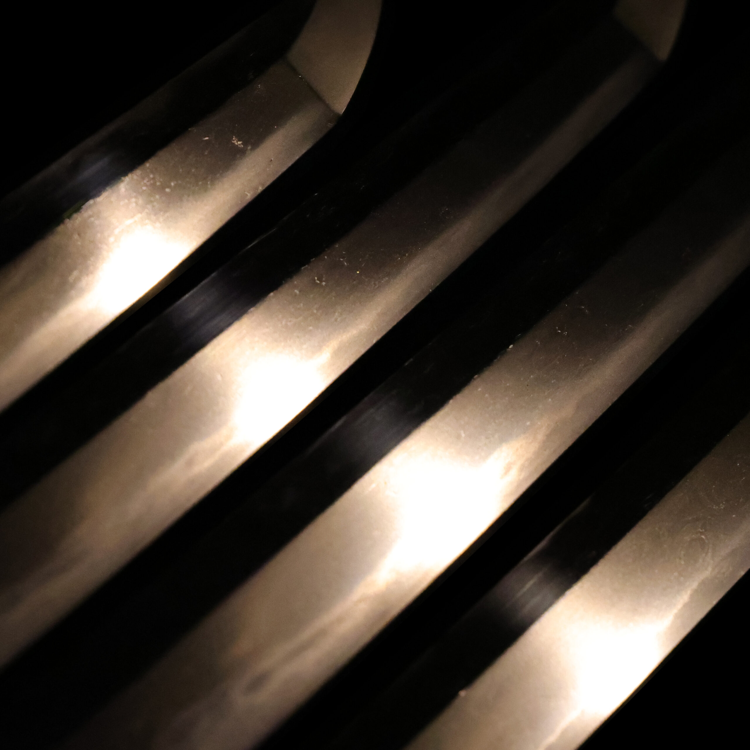 visible steel surface pattern created by folding and hammering during forging process