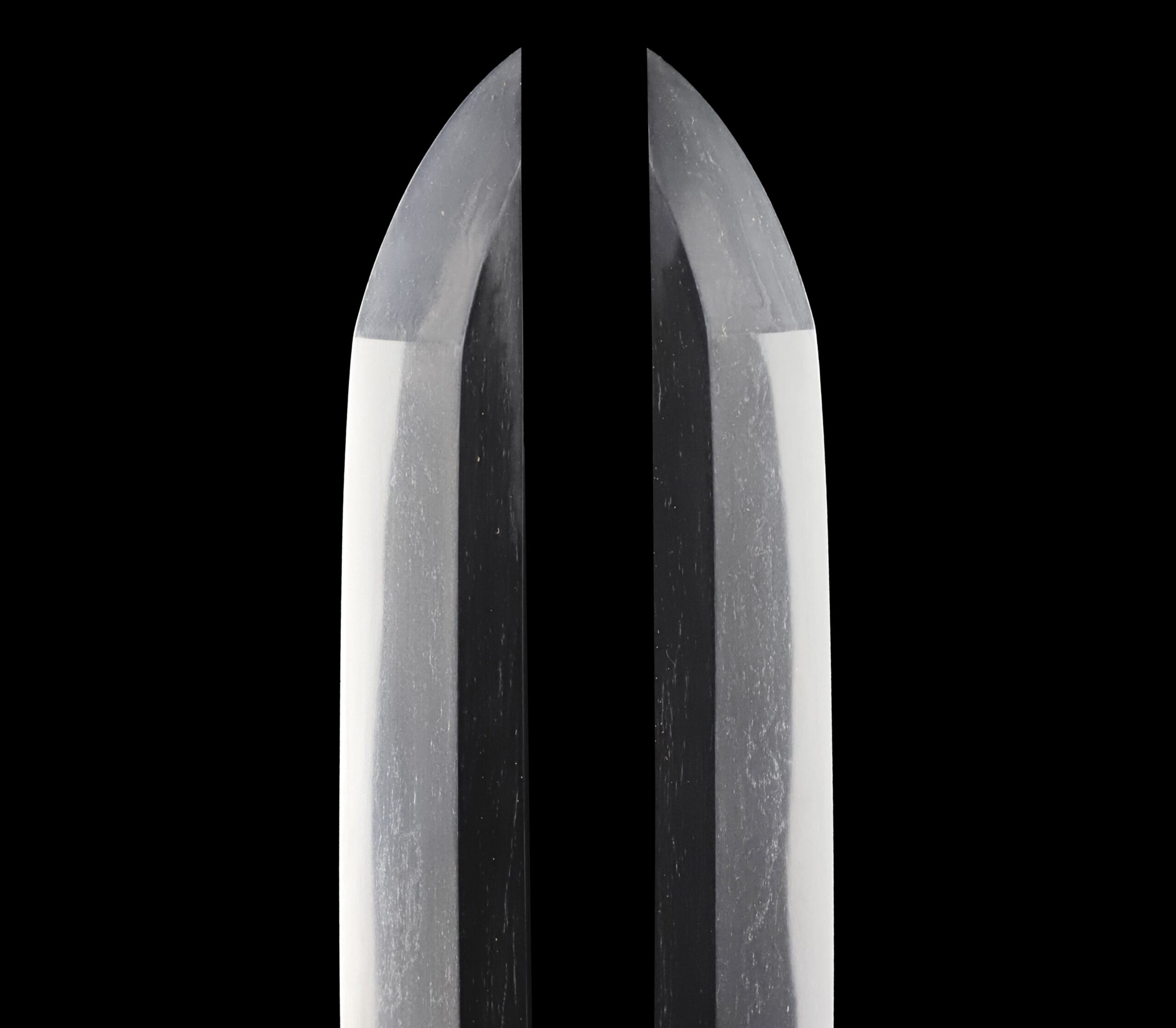 This blade, though unsigned (mumei), has been authenticated as the work of Uda Tomotsugu (宇多友次). There were several smiths named Tomotsugu active within the Uda school from the late Nanbokuchō period (14th century) through the late Muromachi period (16th century). Based on the style and workmanship, this piece is most likely attributed to a Tomotsugu from the late Nanbokuchō period (mid-14th century).