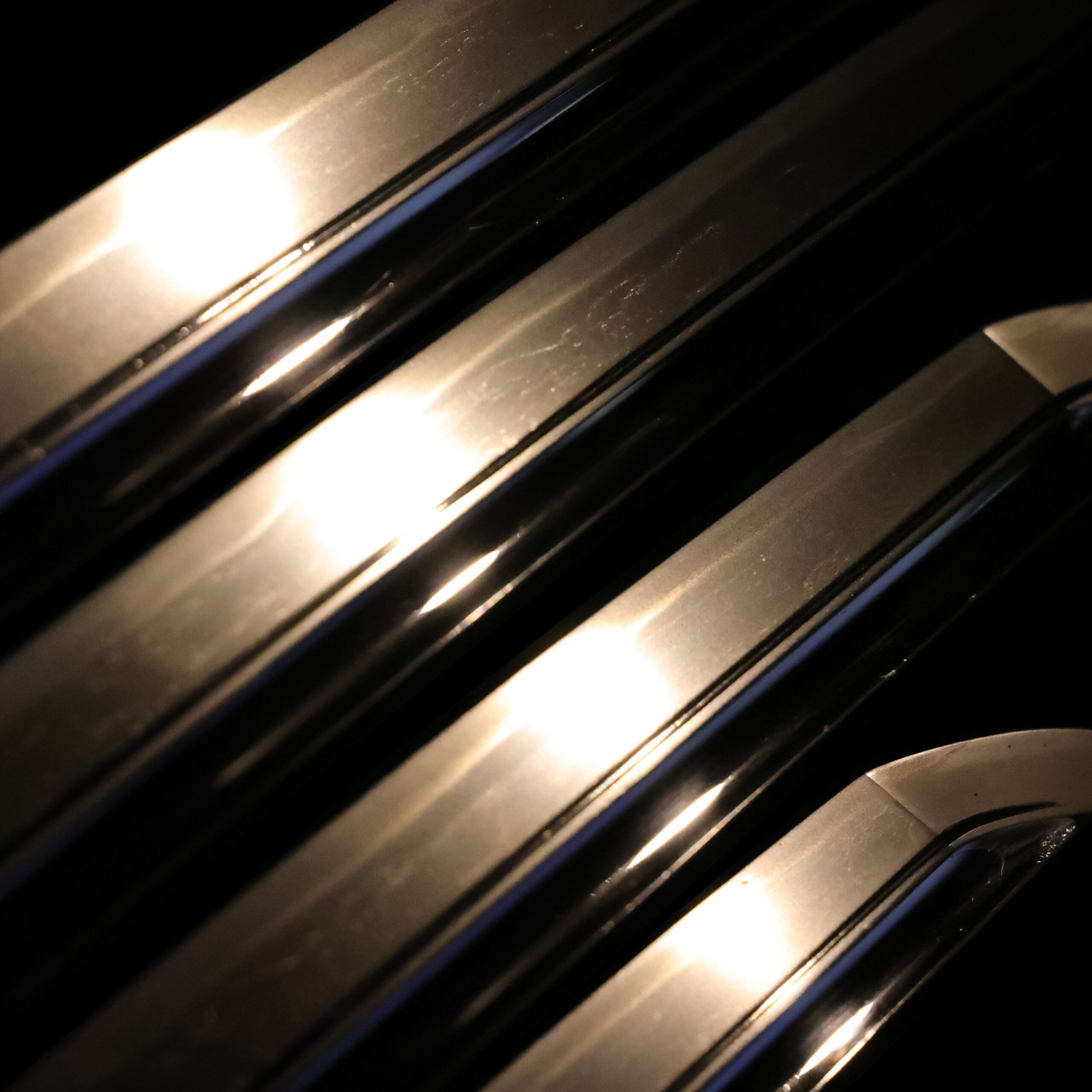 visible steel surface pattern created by folding and hammering during forging process