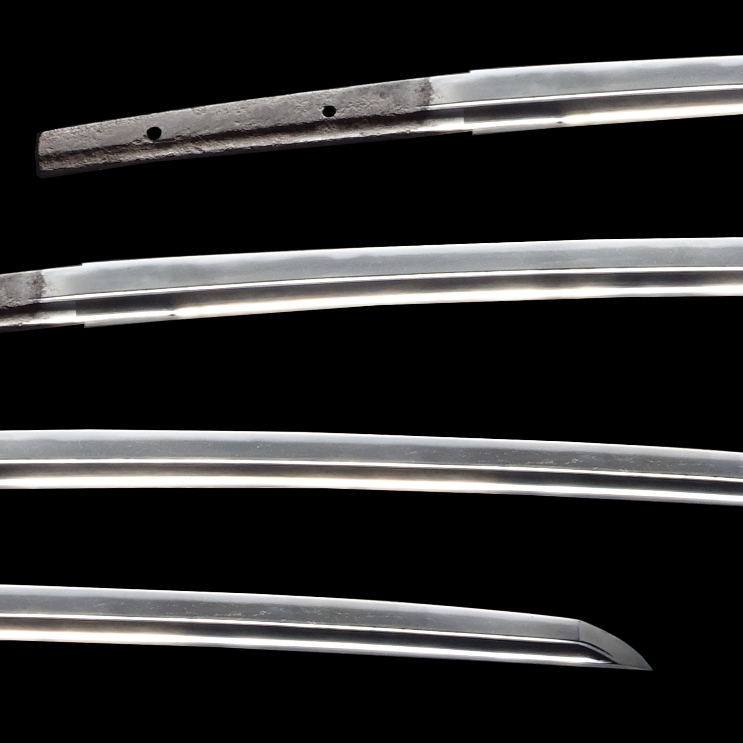 Japanese swordsmiths left the black rust on the tang because it prevents red rust while the tang is in its handle. And the discoloration of the tang was created over time, and it is a great indicator for a Japanese sword specialist to estimate when the sword was forged.