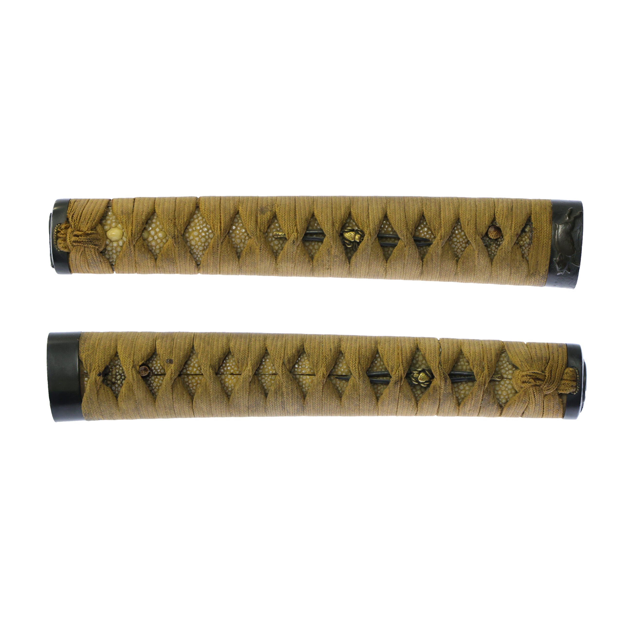 Tsuka and Menuki:Tsuka is the handle of the Japanese sword and Menuki is its decoration.