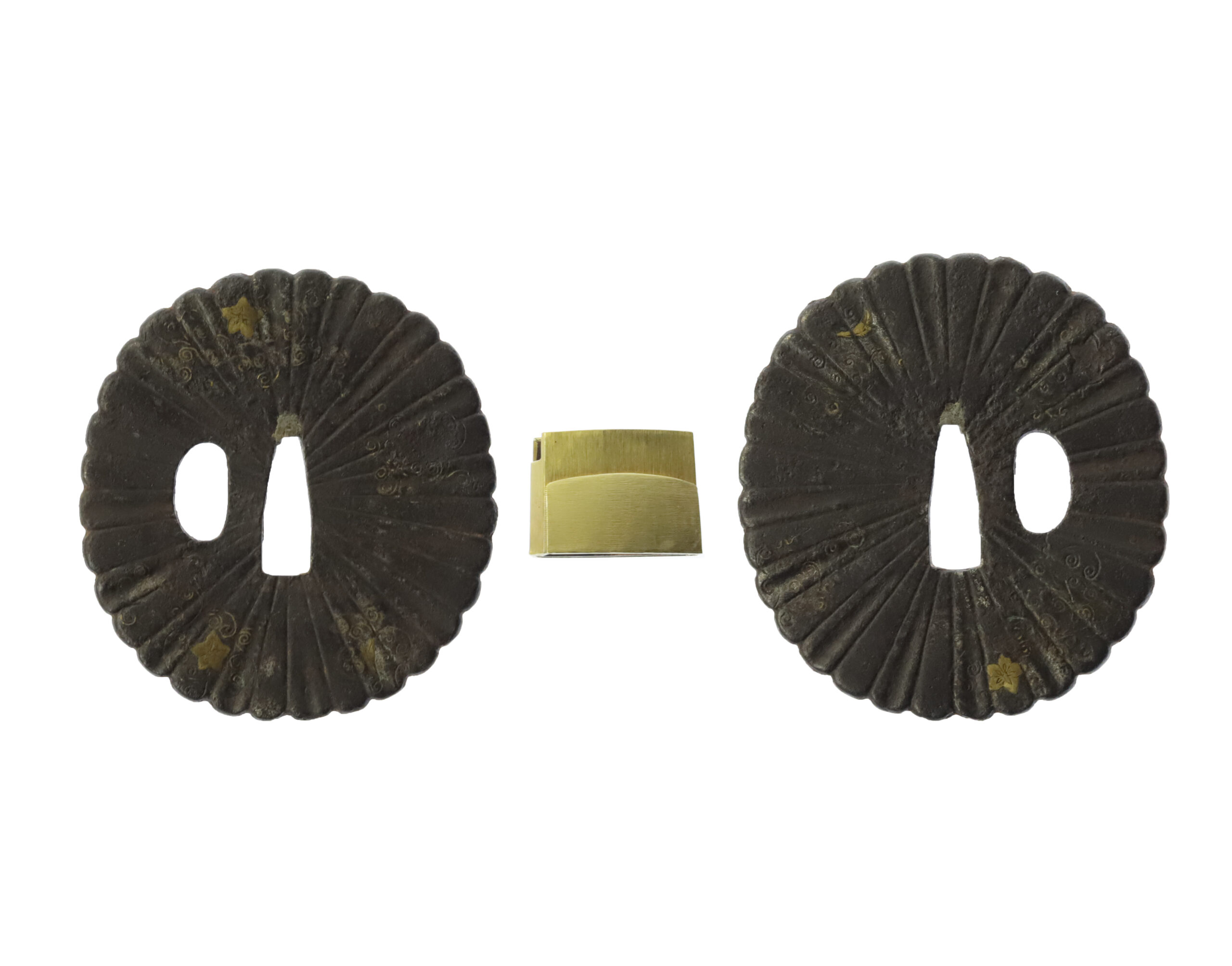 Fuchi-KashiraA pair of matching sword fittings that cover the upper and bottom parts of its sword hilt.