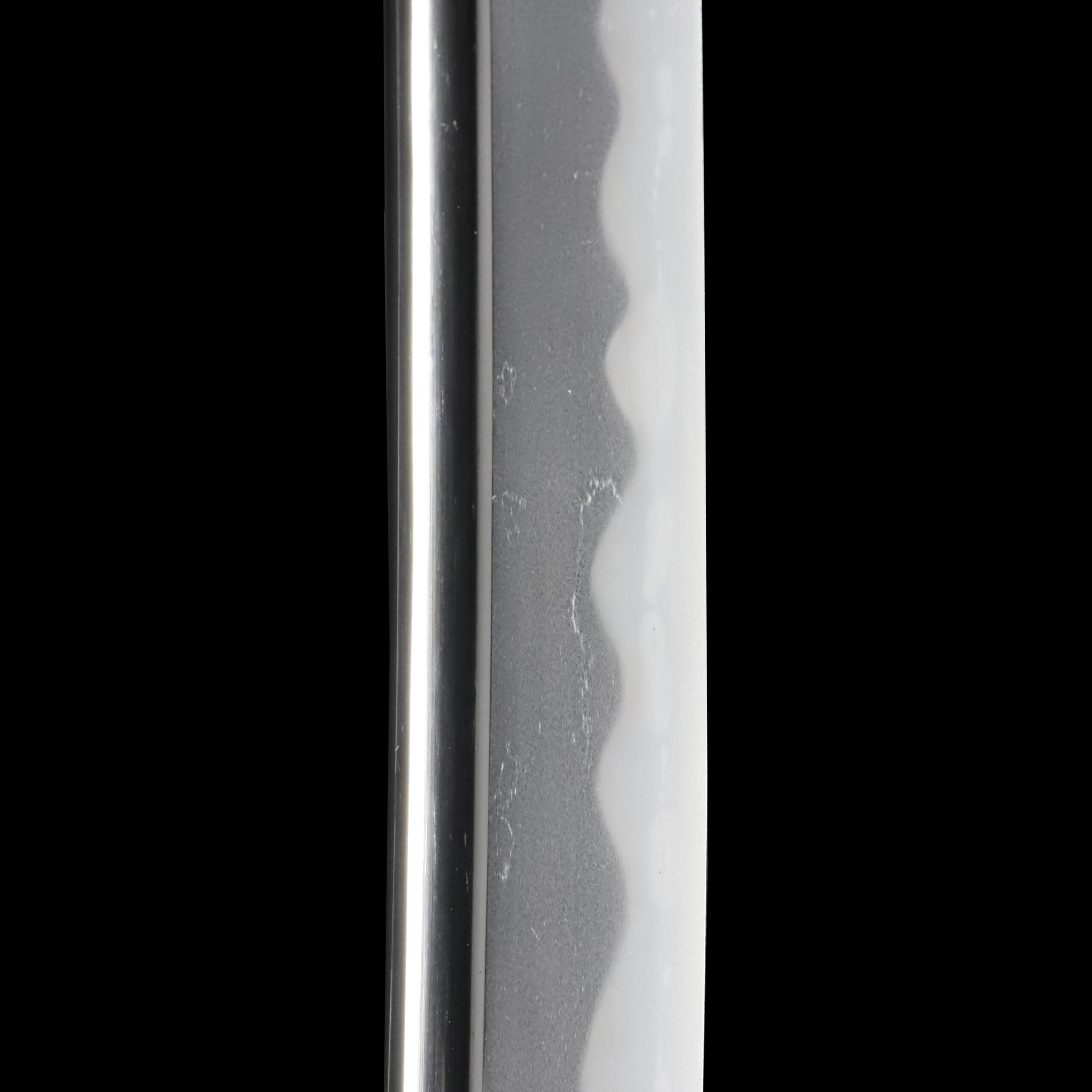 In his later years, Munetsugu moved to Musashi province (today’s Tokyo) and established his forge there. He was active from around 1830 to 1870 and became widely known for his refined Bizen-den style—one of the five great traditions of Japanese swordsmithing (Gokaden, 五箇伝). His works often display a beautiful chōji-gunome midare (丁子互の目乱れ) hamon, a distinctive undulating tempering pattern characteristic of the Bizen tradition. Through his masterful control of steel and temper, he produced blades that combine both elegance and strength, earning him a reputation as arguably the finest smith working in the Bizen style at the end of the Edo period.