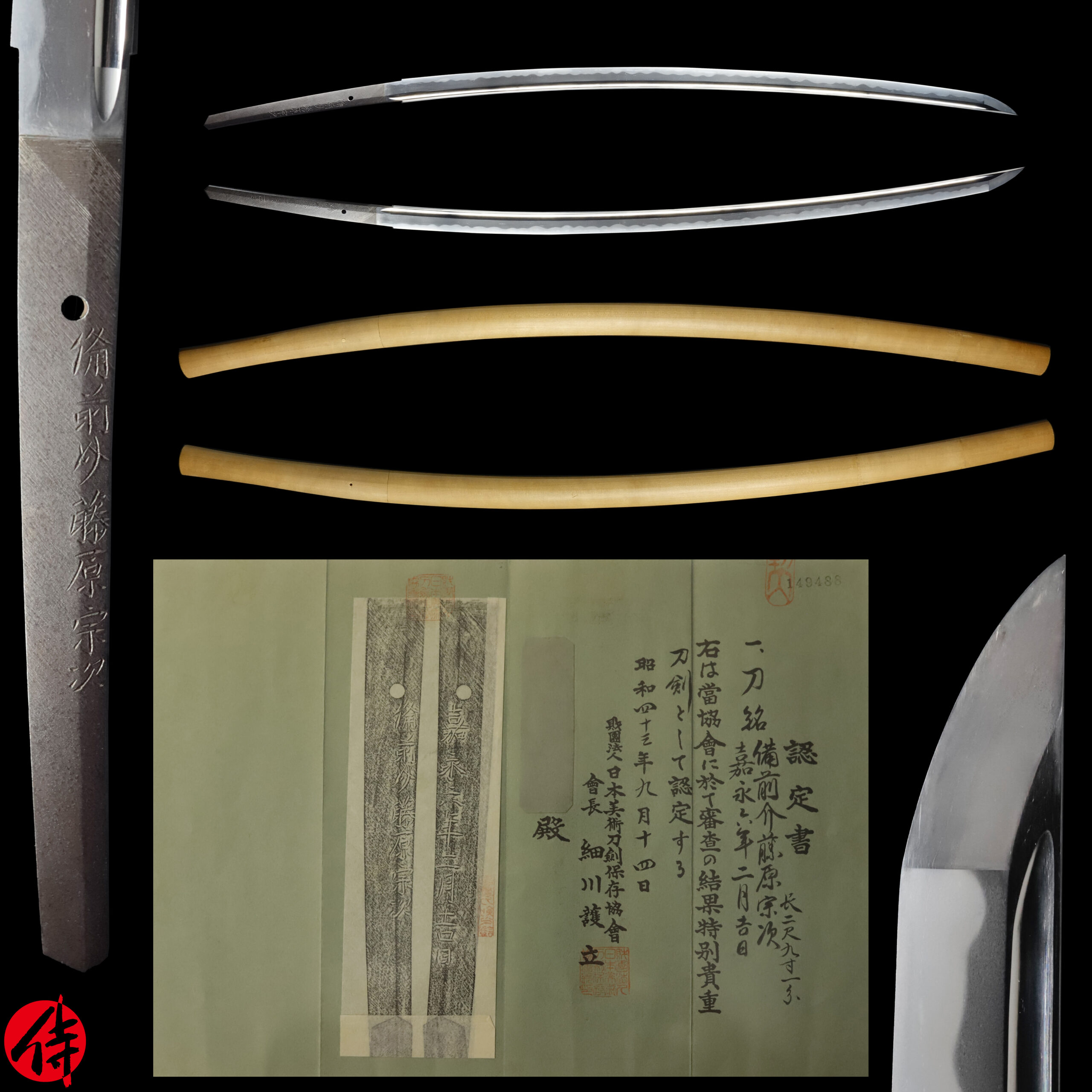 Antique Japanese Sword Katana Signed by Fujiwara Munetsugu with Tokubetsu Kichou Certificate