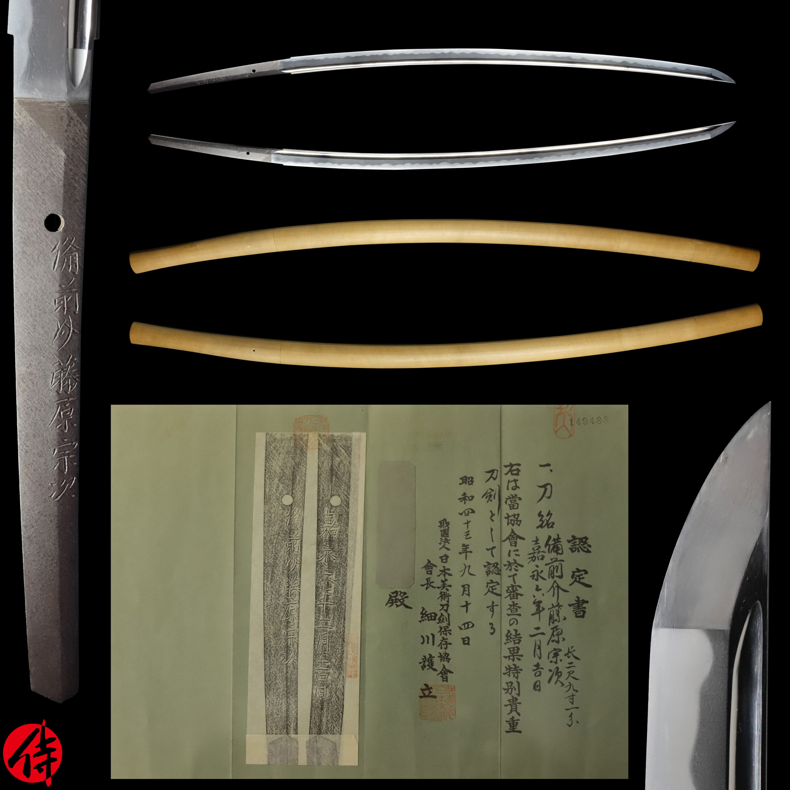Antique Japanese Sword Katana Signed by Fujiwara Munetsugu with Tokubetsu Kichou Certificate