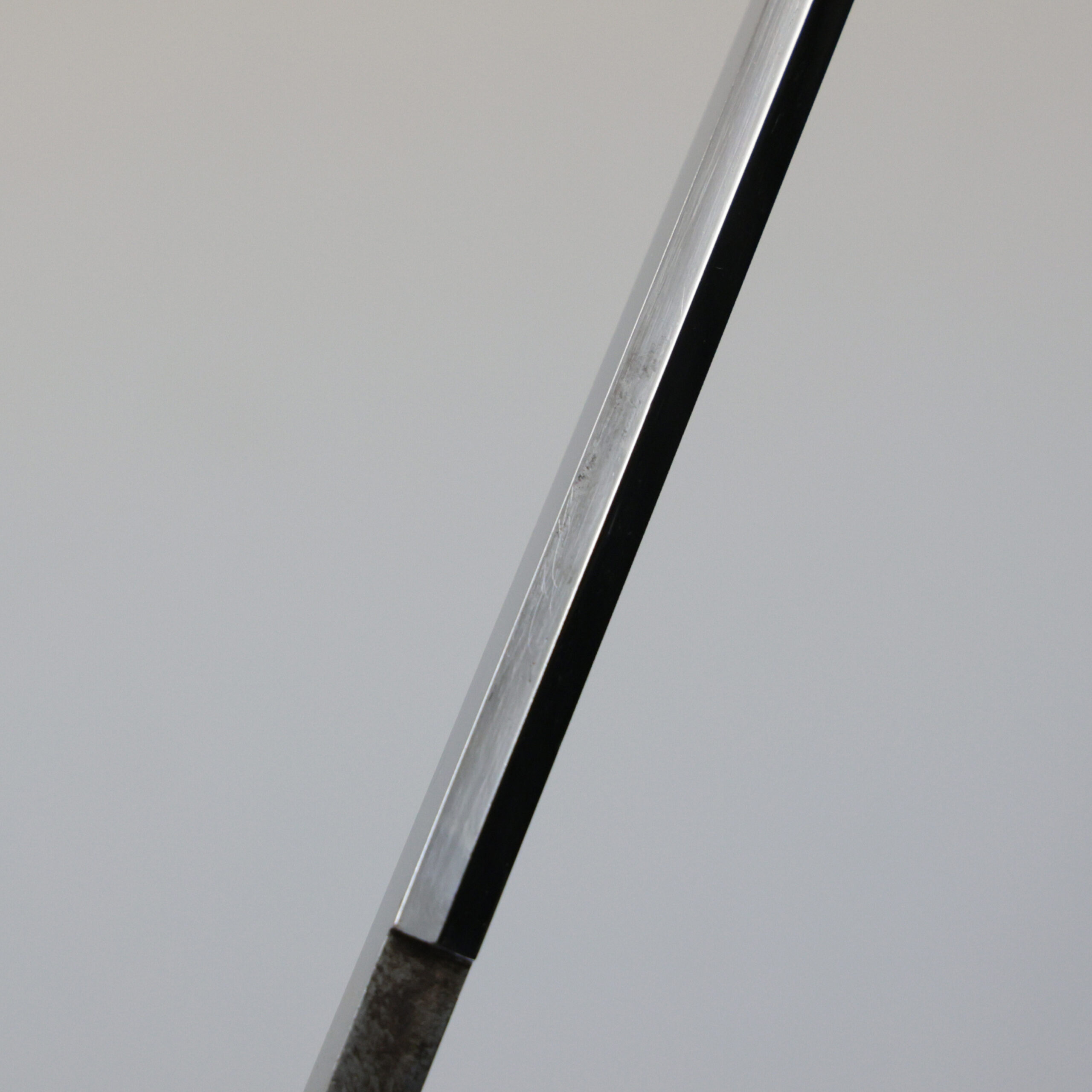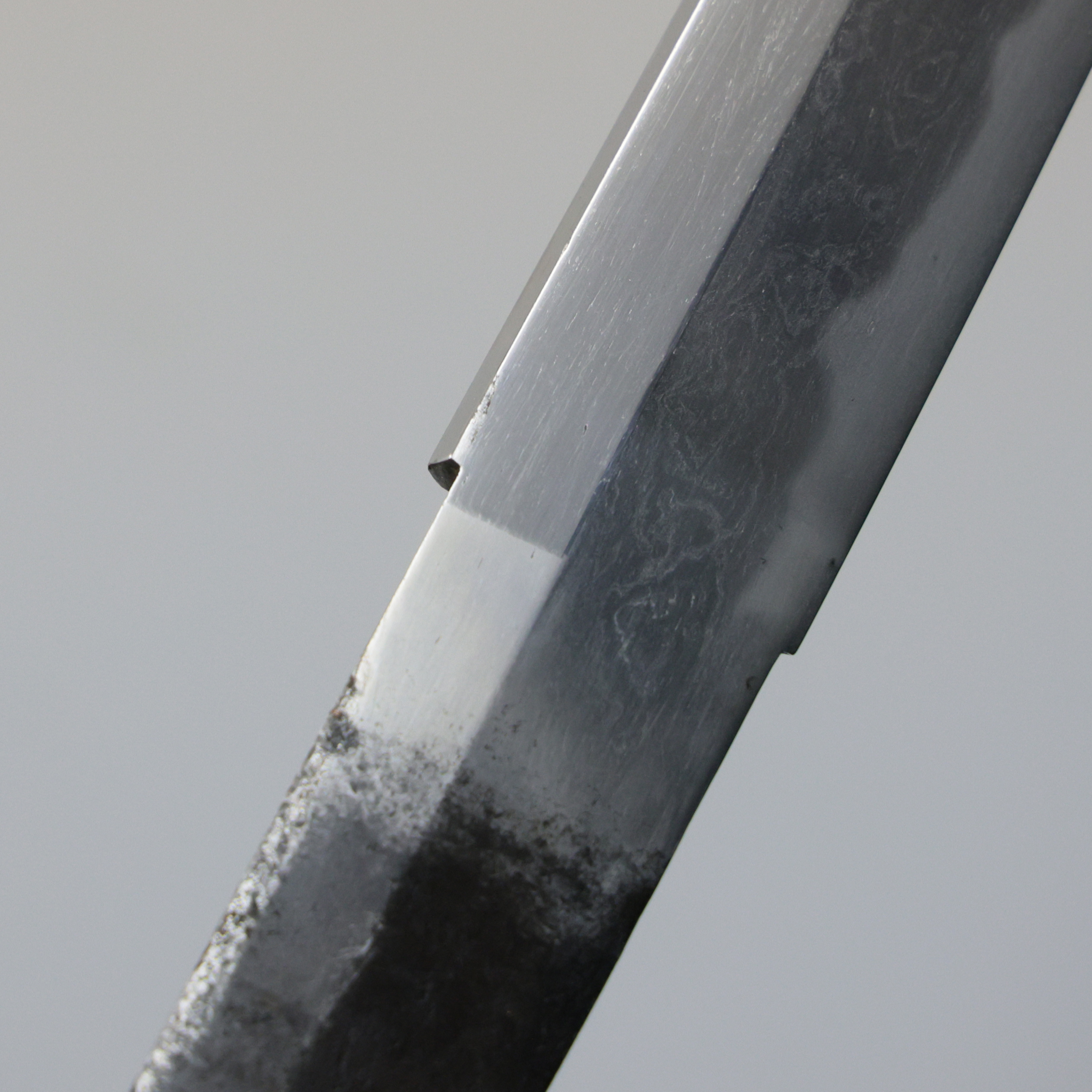 Japanese swordsmiths left the black rust on the tang because it prevents red rust while the tang is in its handle. And the discoloration of the tang was created over time, and it is a great indicator for a Japanese sword specialist to estimate when the sword was forged.
