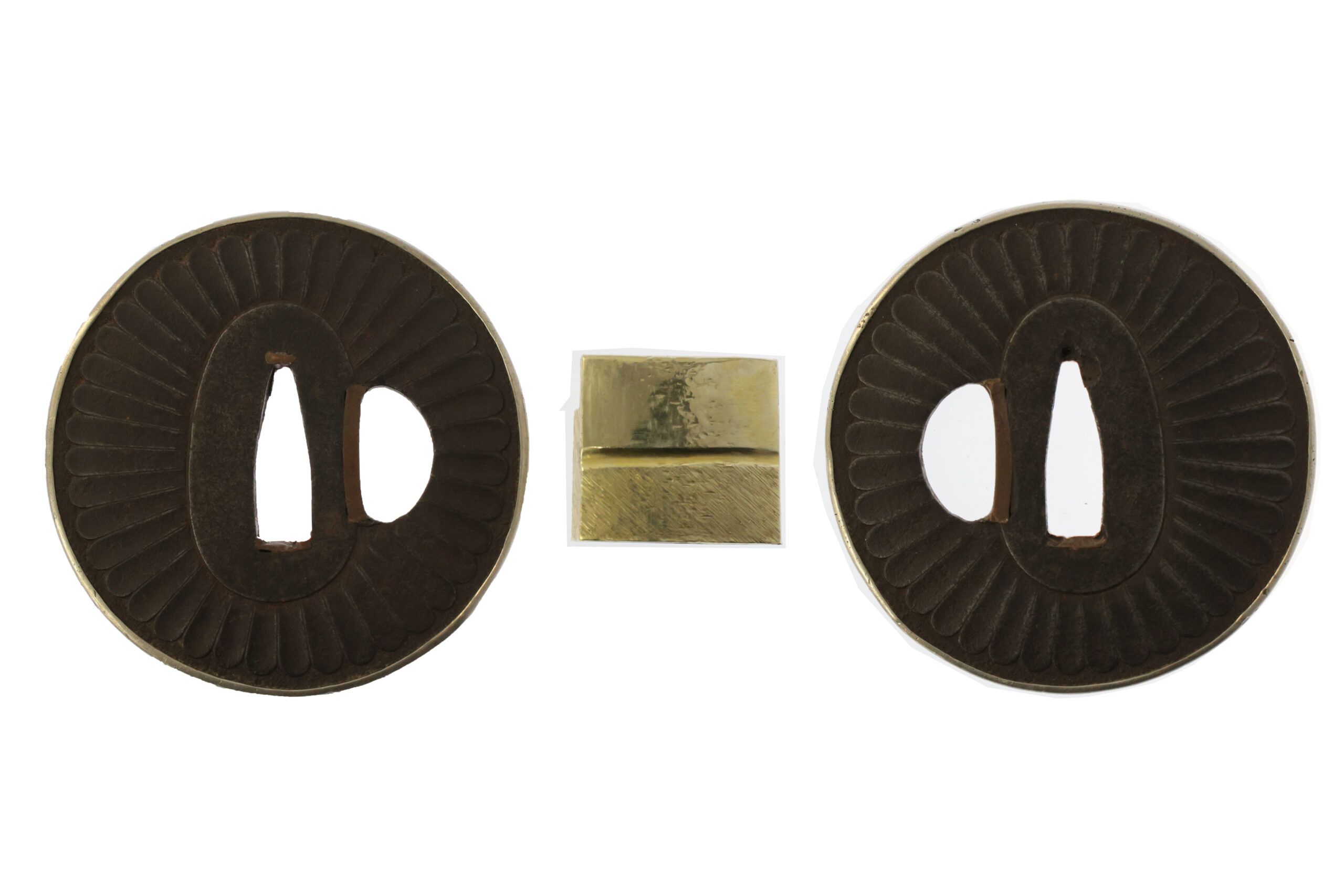 Fuchi-KashiraA pair of matching sword fittings that cover the upper and bottom parts of its sword hilt.