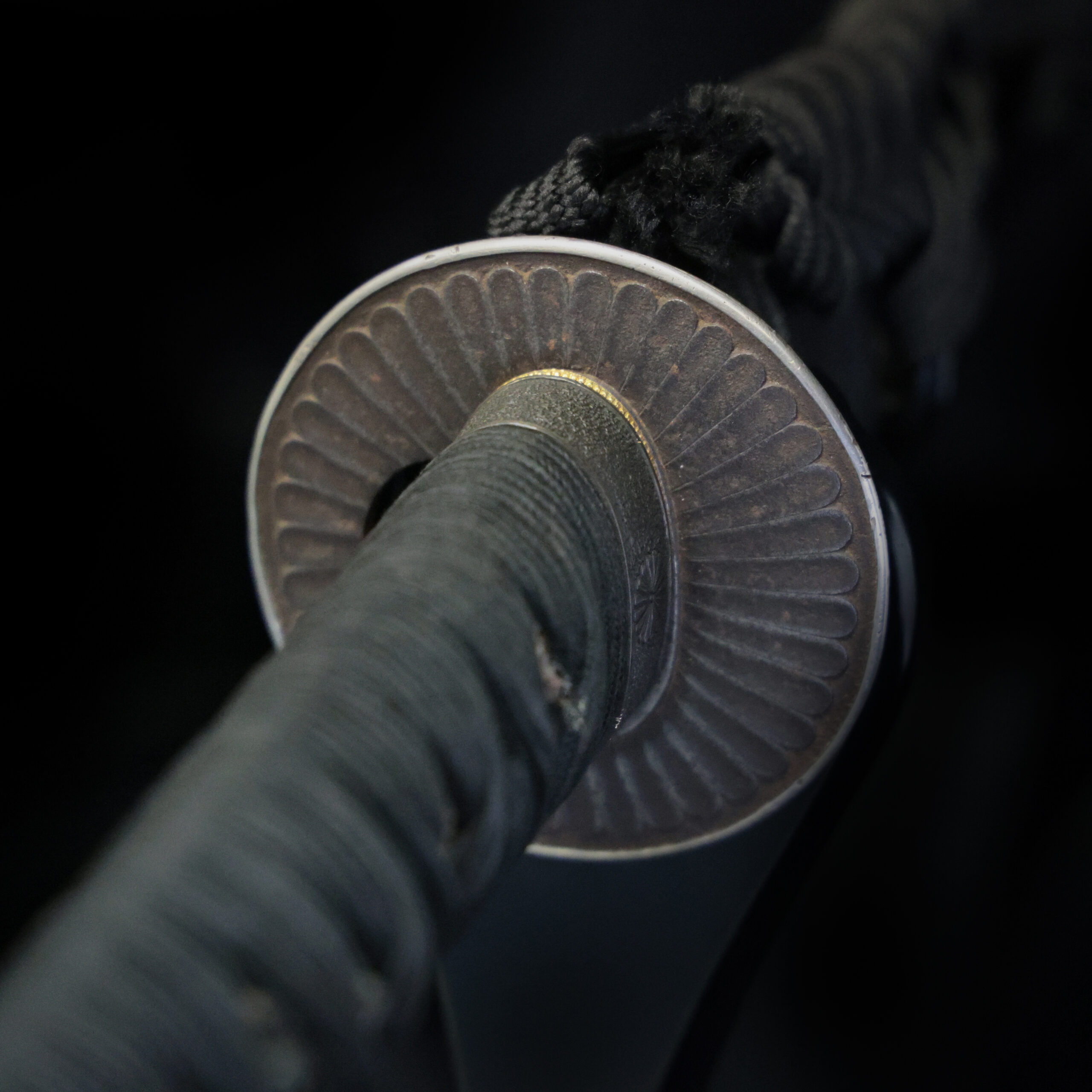 This Saya is covered with black lacquer. Due to its high waterproof effect, lacquer has been used since ancient times in Asia. The blade of a Japanese sword is made of iron, and moisture is the greatest enemy of iron. For the purpose of carrying the blade without degrading it, people devised a method of coating the scabbard with lacquer. To prevent not only moisture but also rain and snow from penetrating the inside of the scabbard, it was necessary to apply multiple layers of lacquer. The Nushi (塗師, lacquerers) was born precisely because advanced techniques were required to handle the complicated processes.