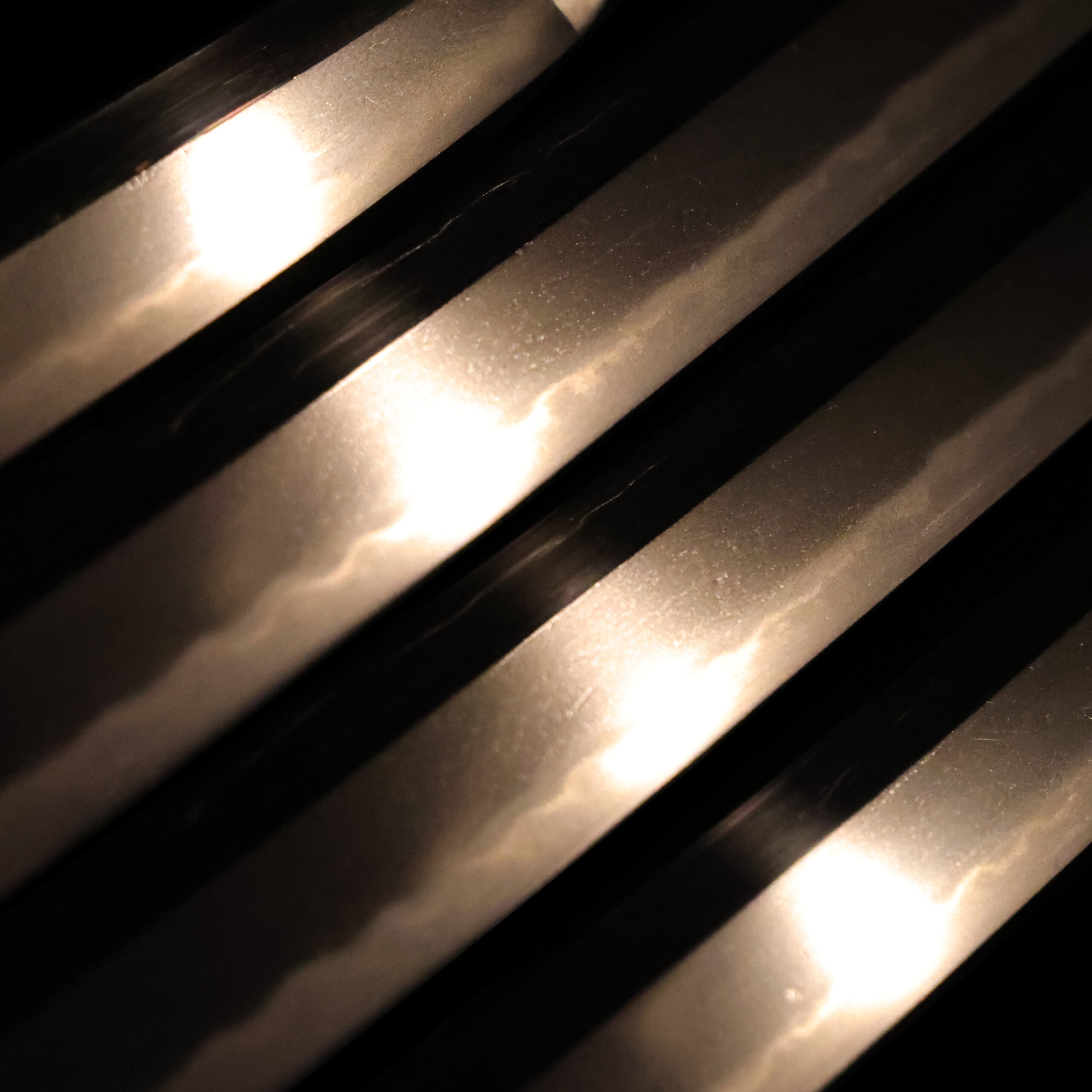 The swords made between the Late Heian Period towards the end of the Warring States (930-1595 A.D.) are called KOTO (古刀: Old-Sword) in Japanese. Those swords were likely to be used in real lives of Samurai, so their designs had to fit the way they used the sword. It is hard to generalize Koto but they typically have a more aesthetically masculine look than those of the other eras. The blacksmithing technique wasn’t fully developed yet in this era, so the KO-TO blades contain gold, silver, and other metals, making the surface pattern of Koto intricate and beautiful.