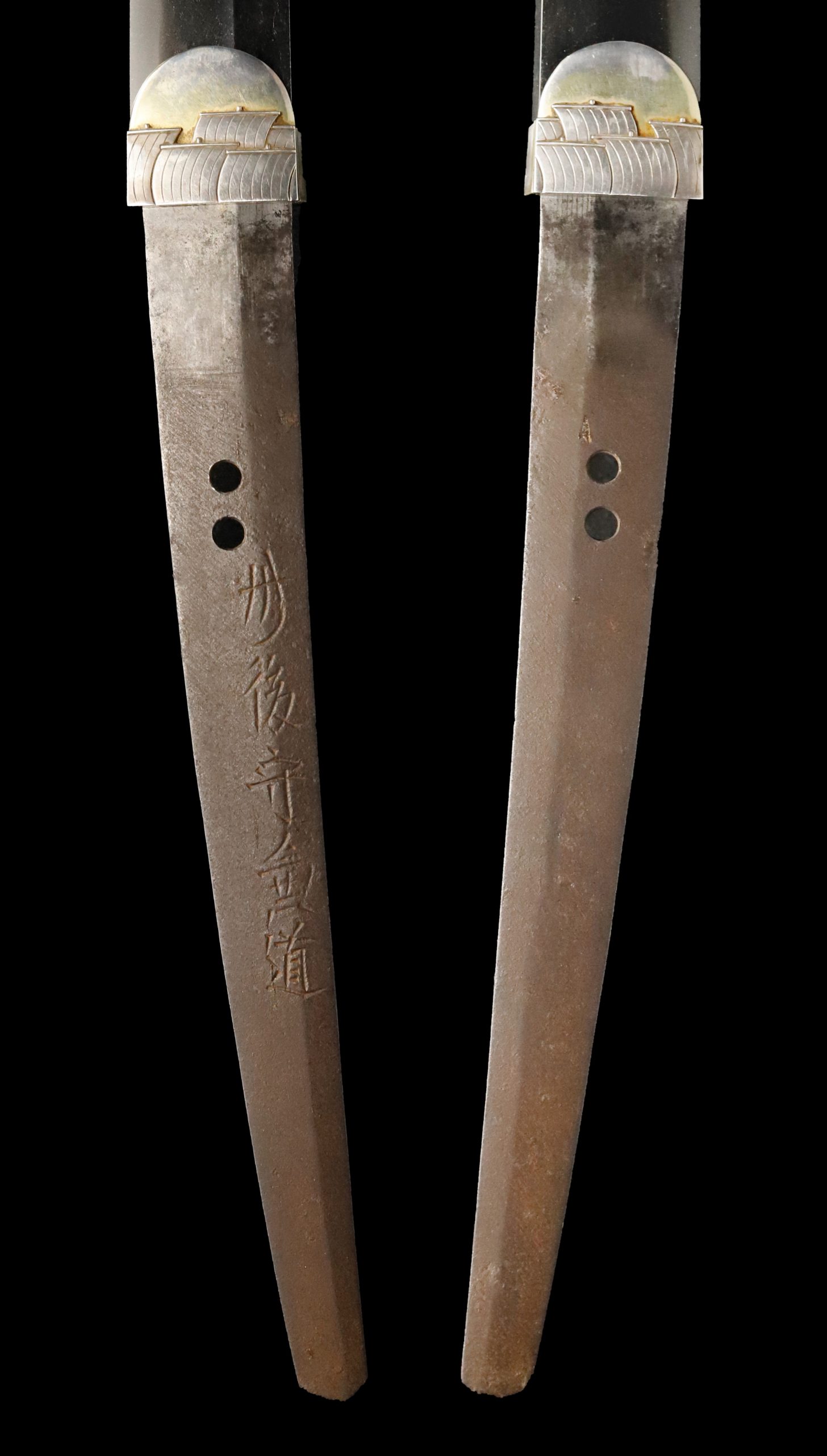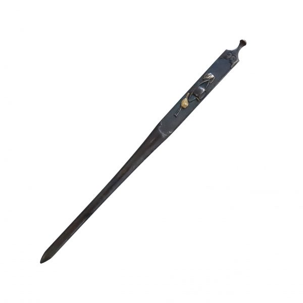 Japanese swordsmiths left the black rust on the tang because it prevents red rust while the tang is in its handle. And the discoloration of the tang was created over time, and it is a great indicator for a Japanese sword specialist to estimate when the sword was forged.