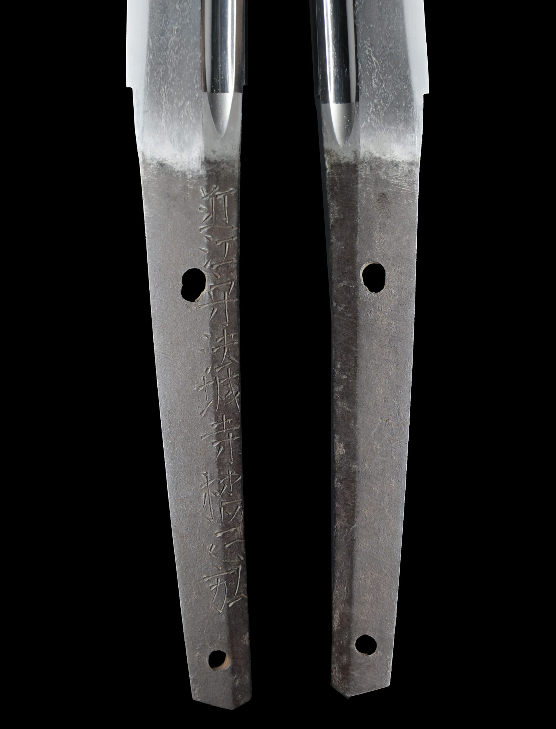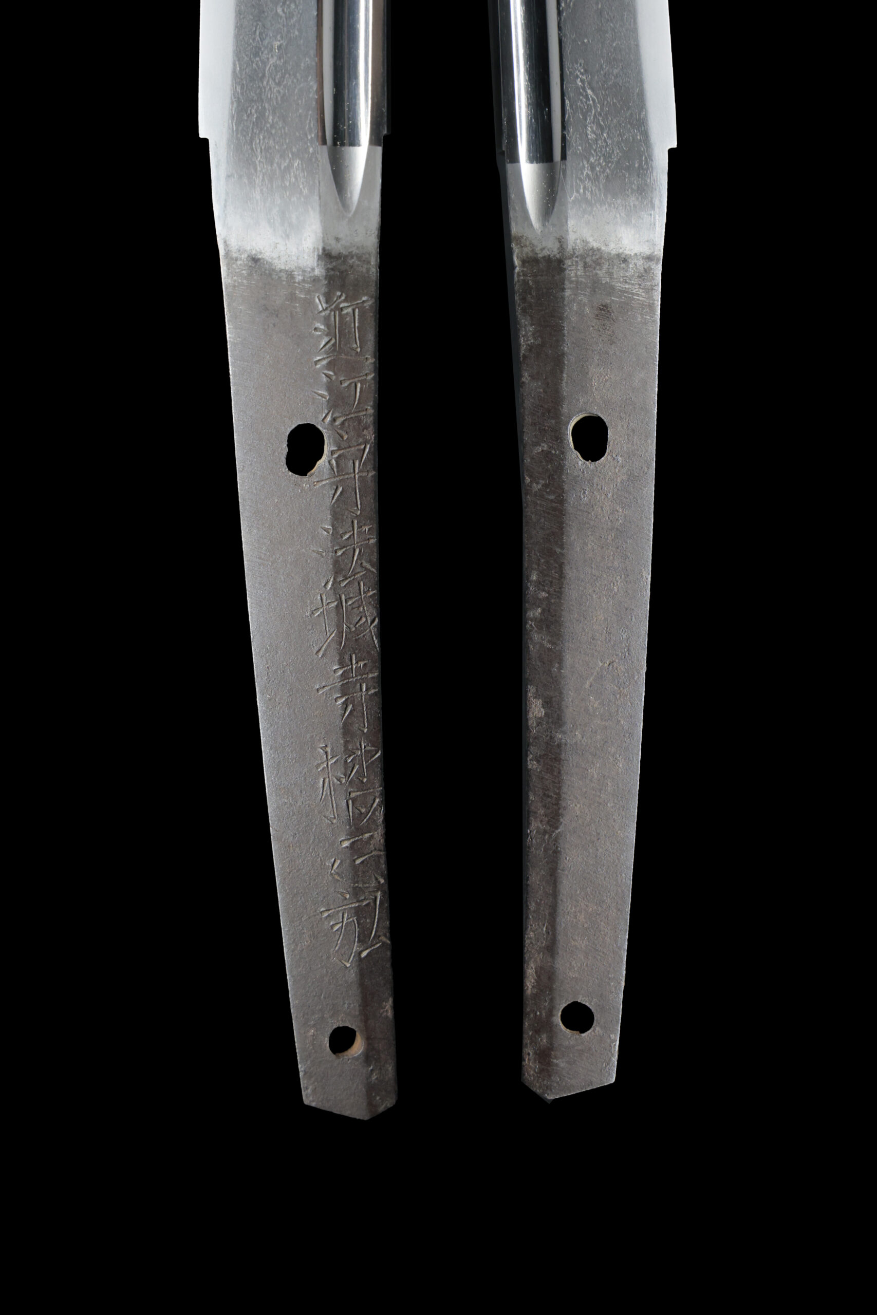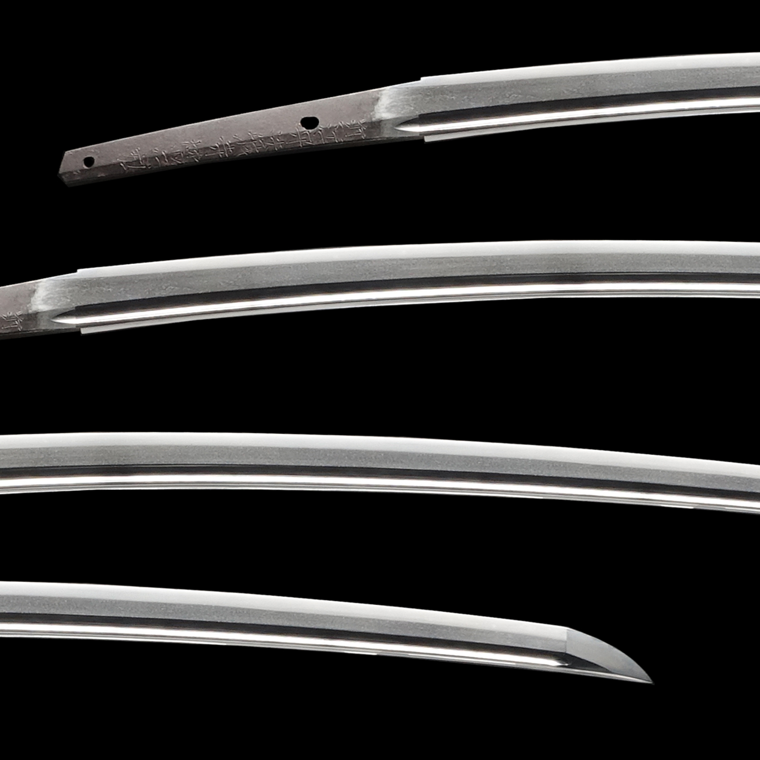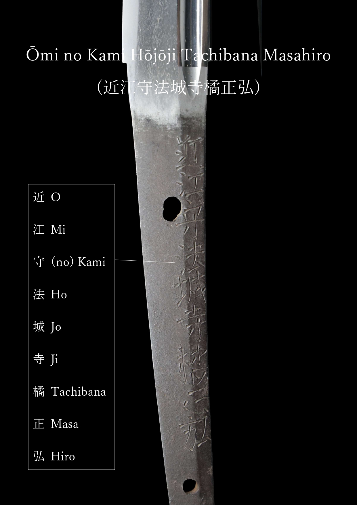 This blade bears the signature of Ōmi no Kami Hōjōji Tachibana Masahiro (近江守法城寺橘正弘). The name Hōjōji refers to the prestigious school of swordsmiths in Edo, today’s Tokyo, while Ōmi no Kami is an honorary title granted by the Imperial Court to recognize outstanding craftsmanship, and Tachibana was his family name. Both the first-generation and the second-generation Masahiro received the title of Ōmi no Kami, and according to the NBTHK authentication, this sword was forged by the second-generation Masahiro. Such titles were reserved only for the most highly regarded smiths of the era, which speaks to the great reputation he enjoyed.
