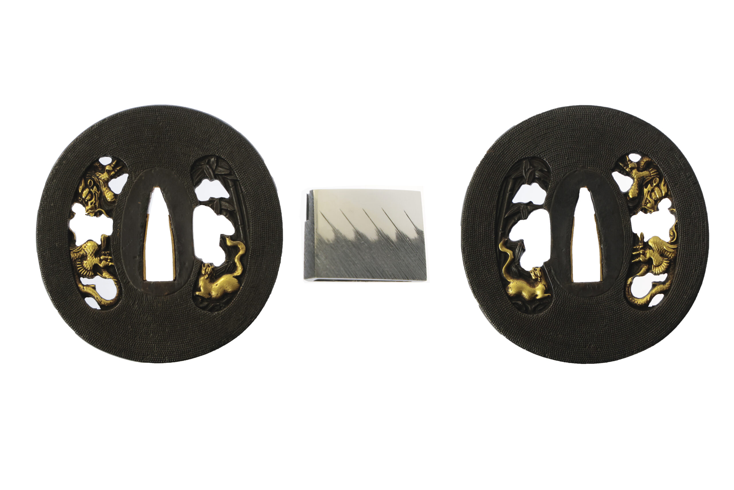 Fuchi-Kashira:A pair of matching sword fittings that cover the upper and bottom parts of its sword hilt.