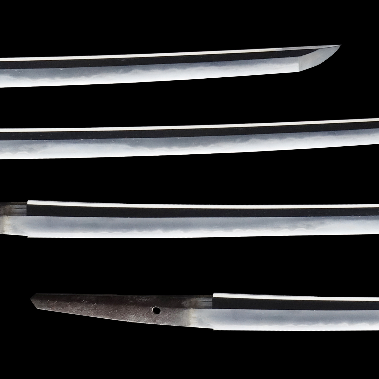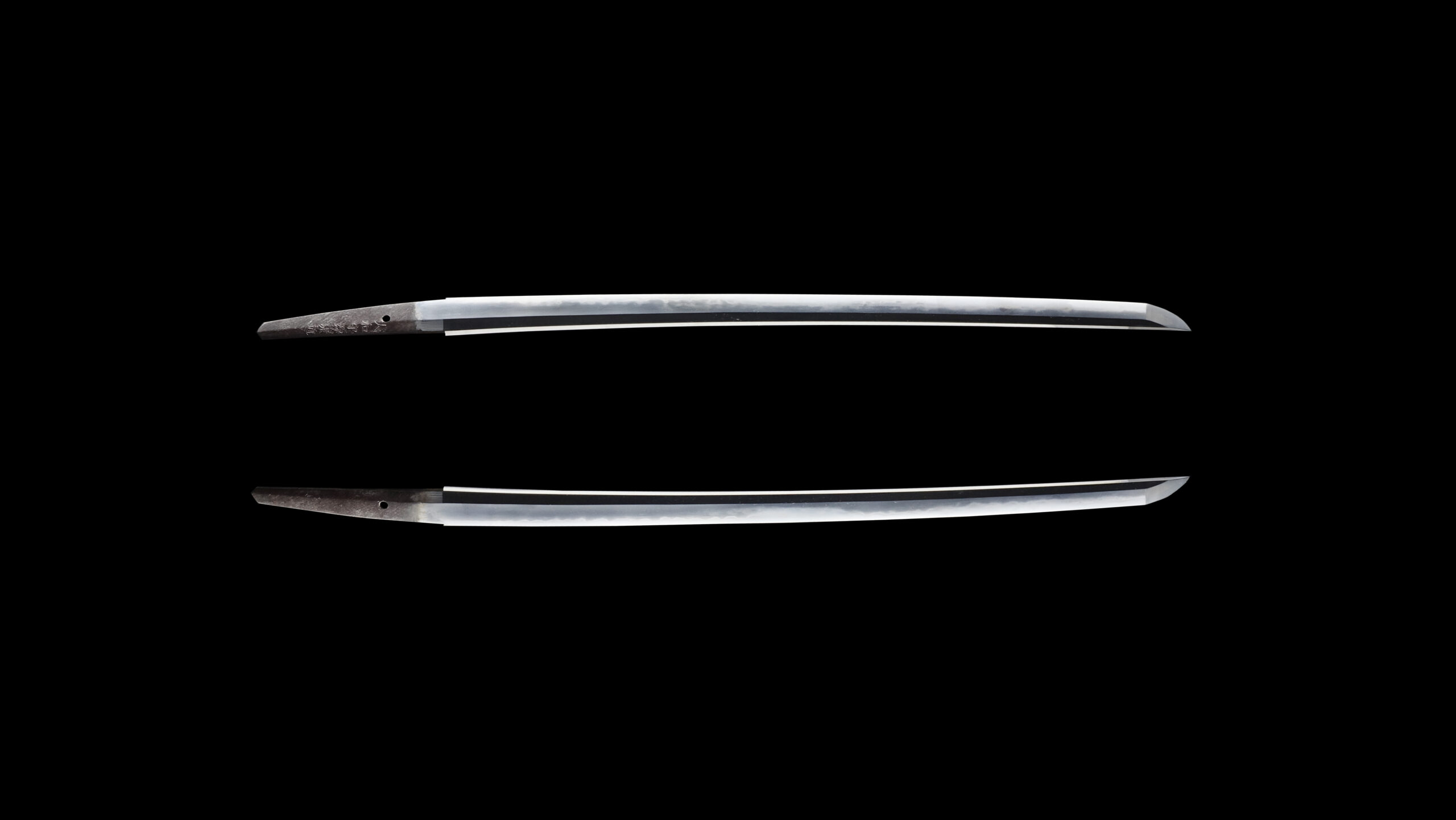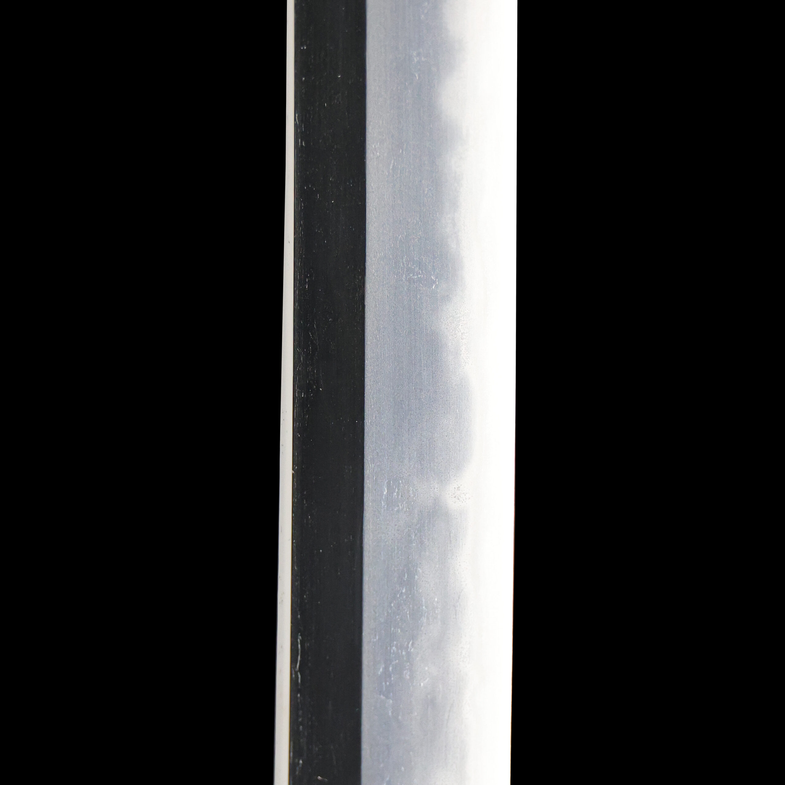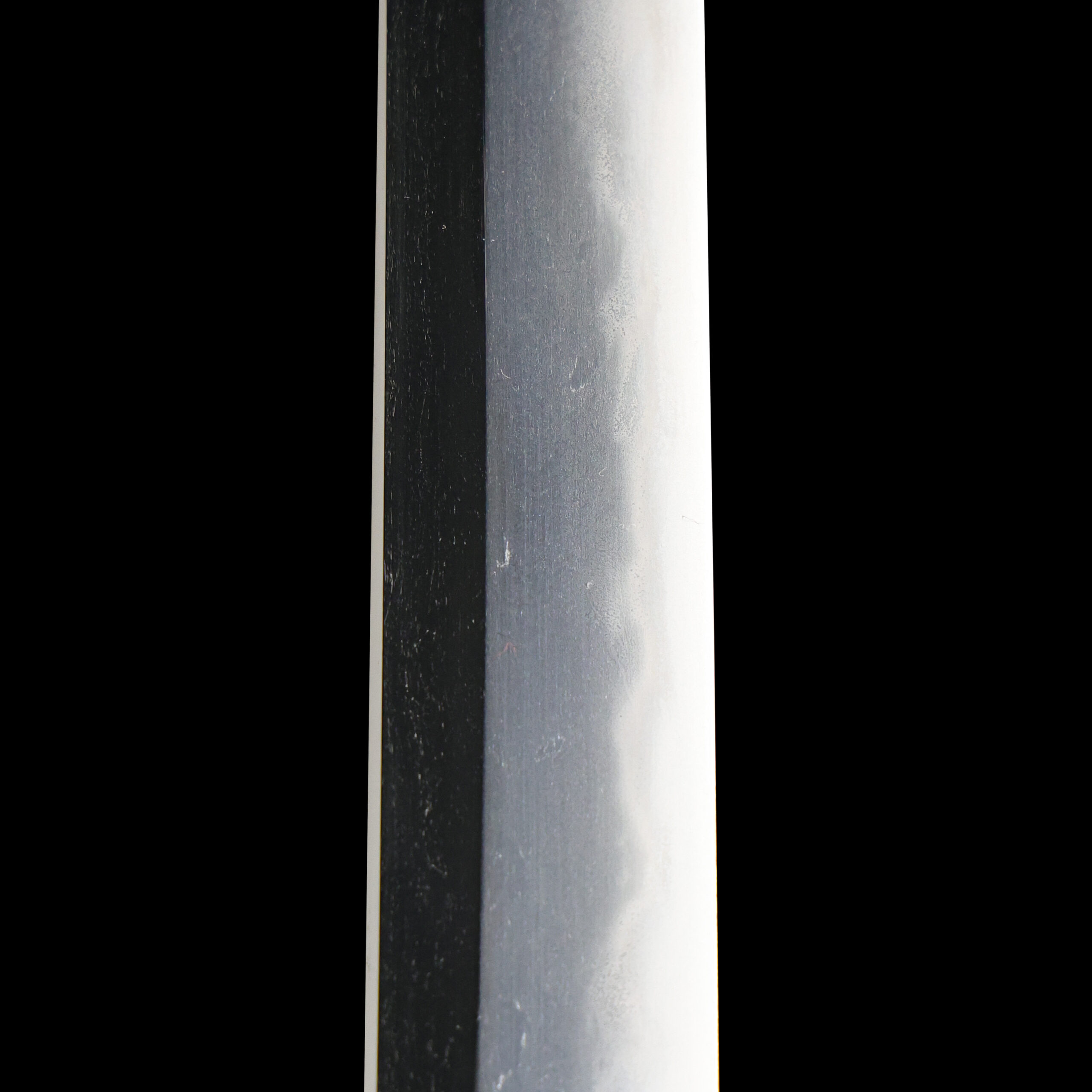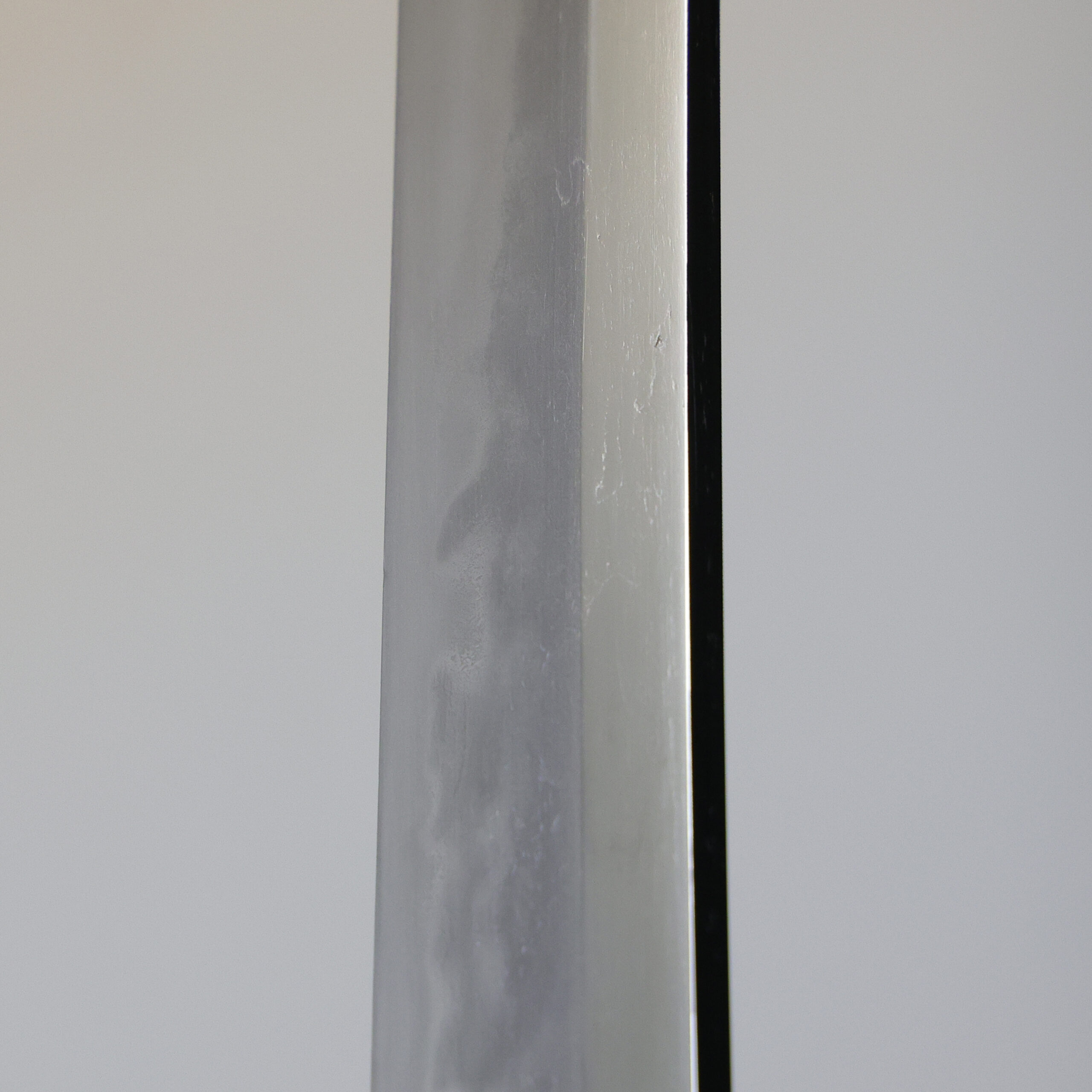 Japanese swordsmiths left the black rust on the tang because it prevents red rust while the tang is in its handle. And the discoloration of the tang was created over time, and it is a great indicator for a Japanese sword specialist to estimate when the sword was forged.