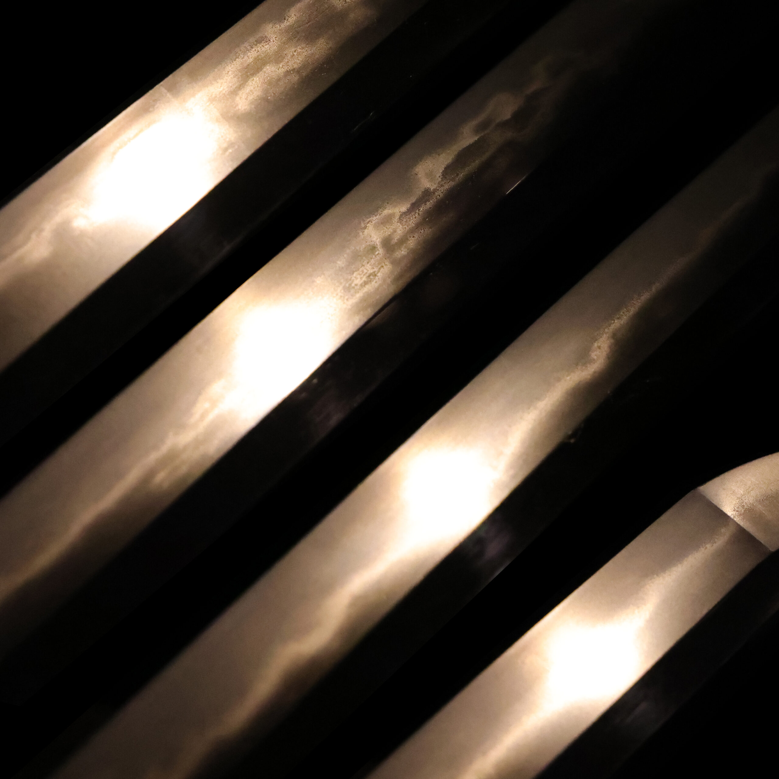 visible steel surface pattern created by folding and hammering during forging process
