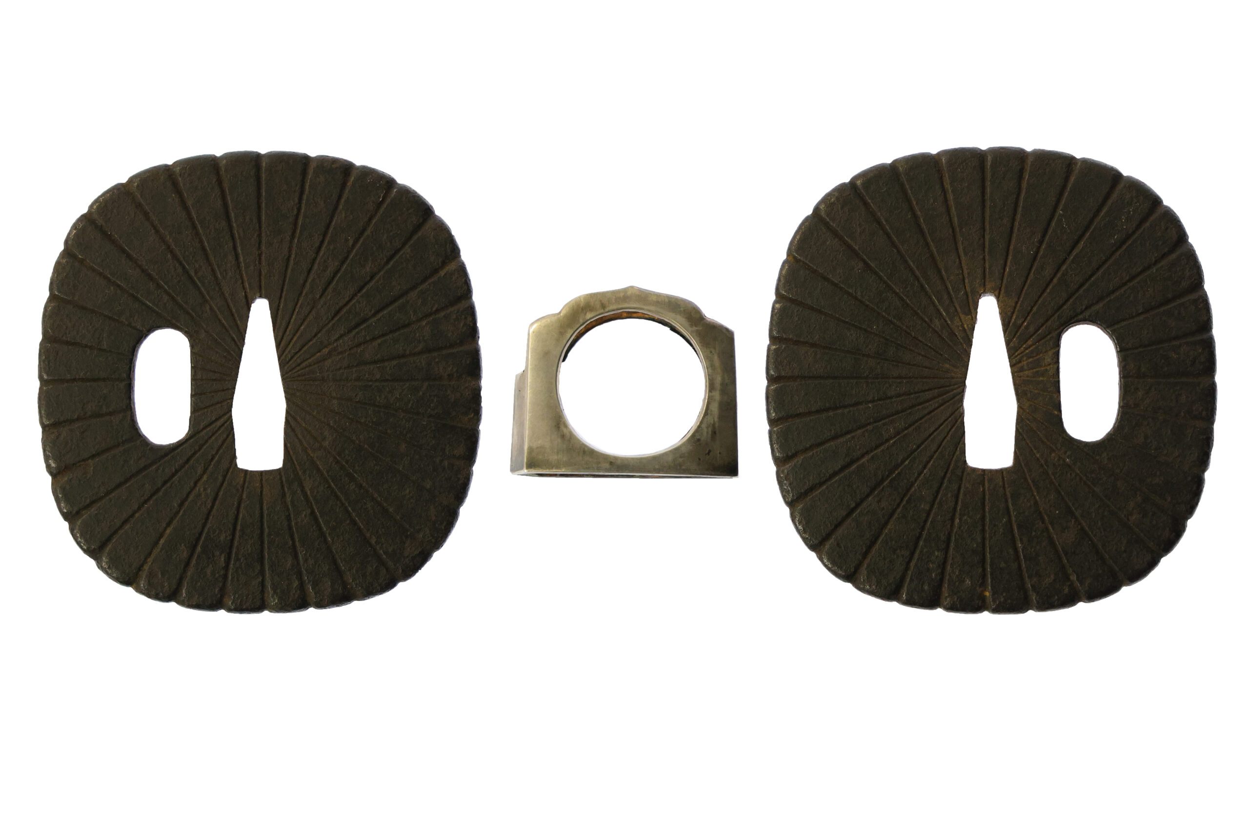 Fuchi-KashiraA pair of matching sword fittings that cover the upper and bottom parts of its sword hilt.