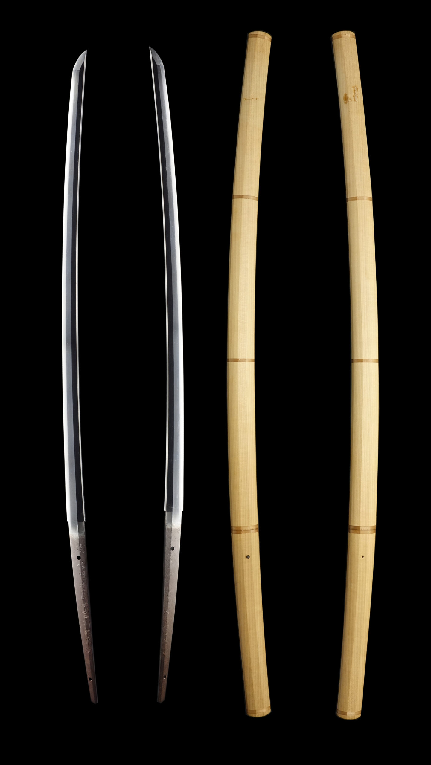 INCLUDED : NBTHK Tokubetsu Hozon Certificate for Katana, NBTHK Hozon Certificate for Wakizashi, Koshirae Mounting×2, Shirasaya Case×2, Traditional Sword Carrying Case×2, Sword Maintenance Kit, Full Exportation Support