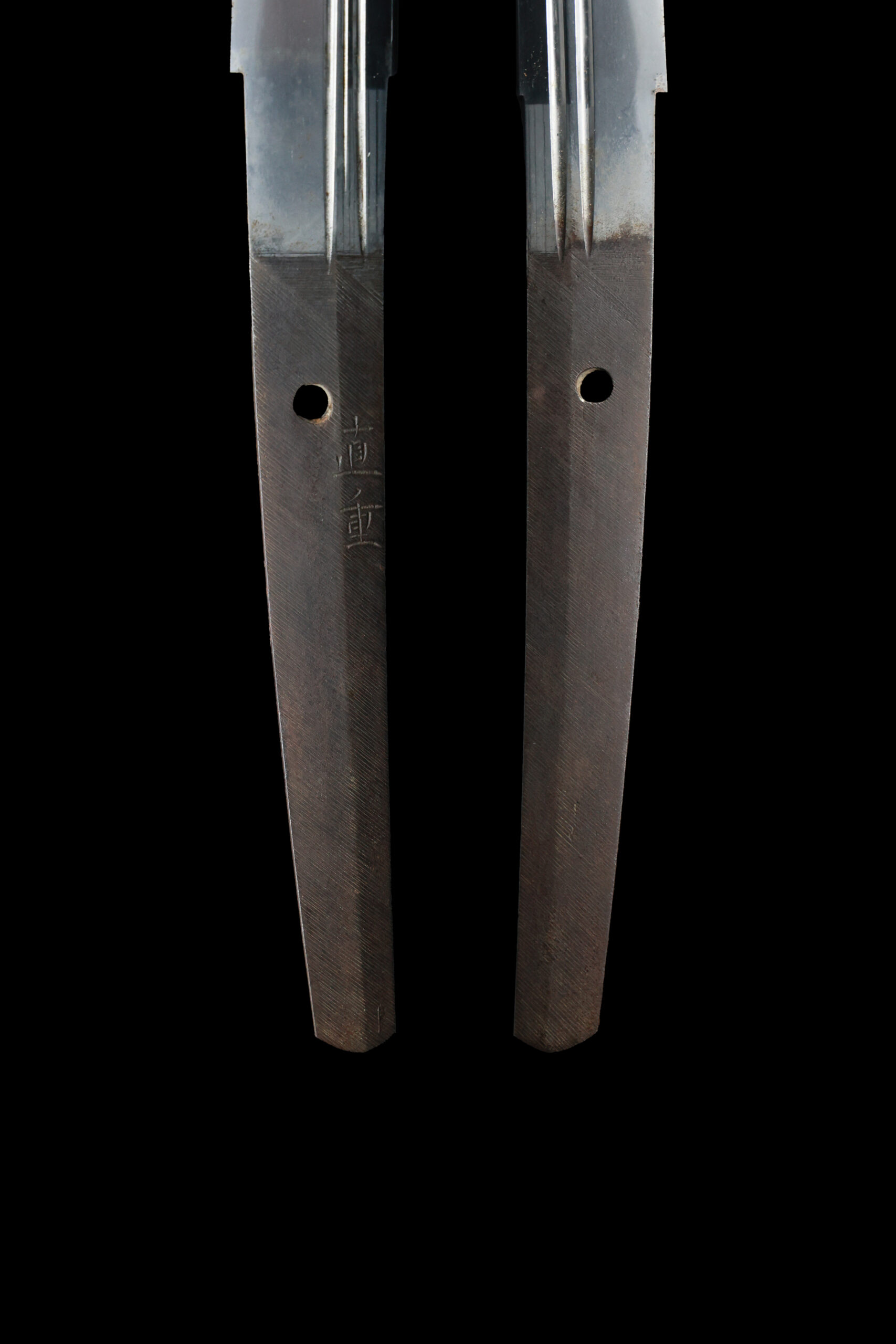 Japanese swordsmiths left the black rust on the tang because it prevents red rust while the tang is in its handle. And the discoloration of the tang was created over time, and it is a great indicator for a Japanese sword specialist to estimate when the sword was forged.