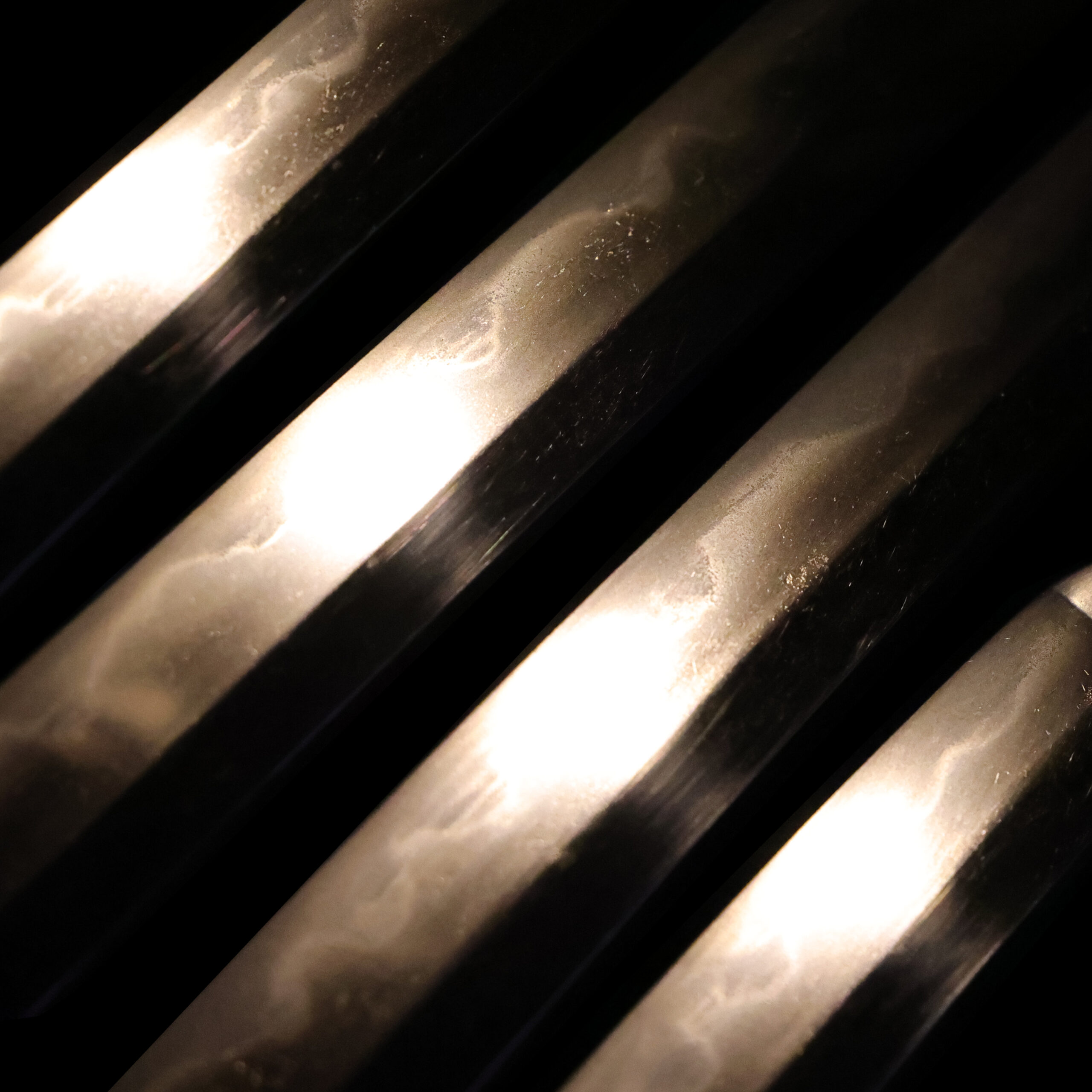 visible steel surface pattern created by folding and hammering during forging process