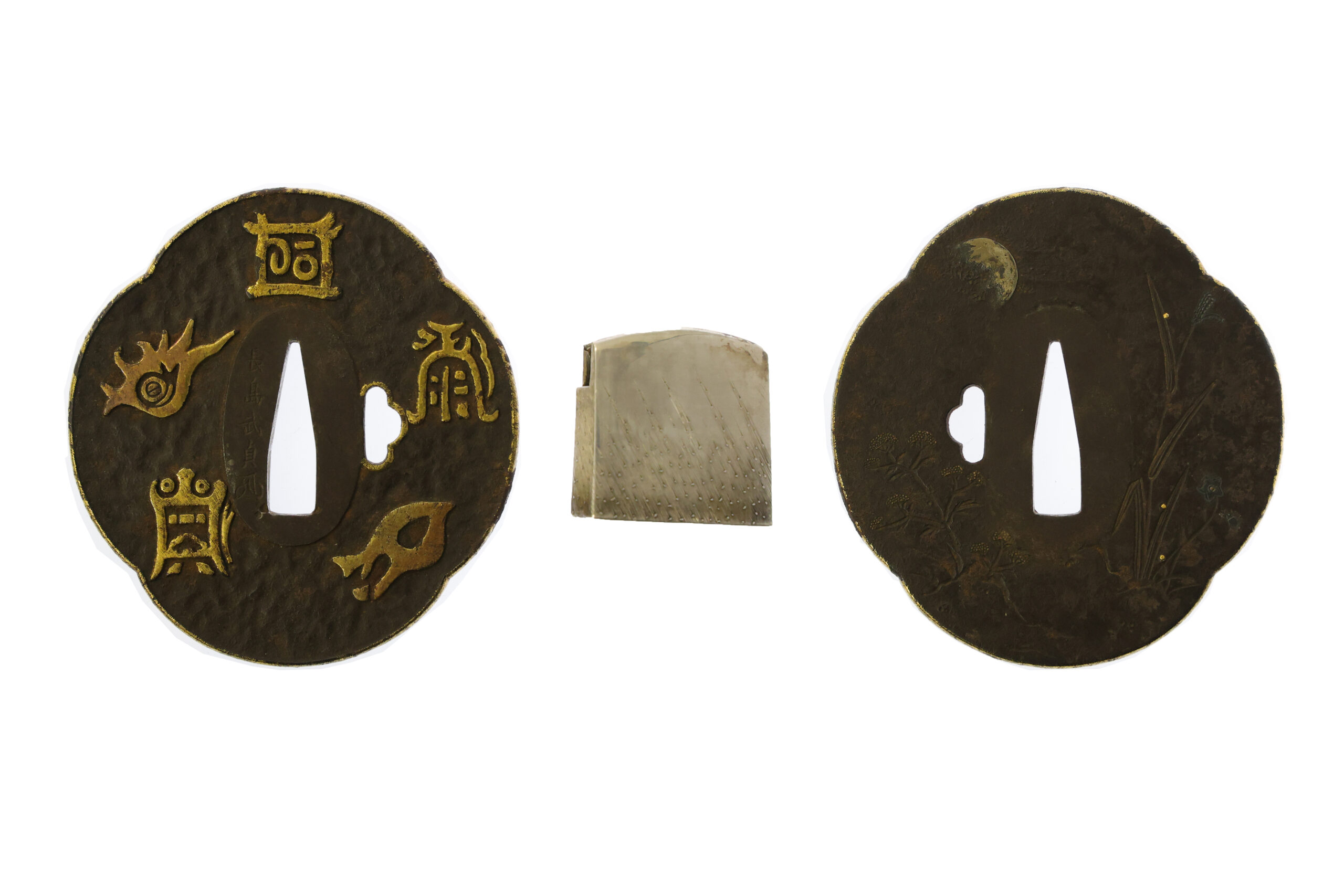 Fuchi-Kashira:A pair of matching sword fittings that cover the upper and bottom parts of its sword hilt.
