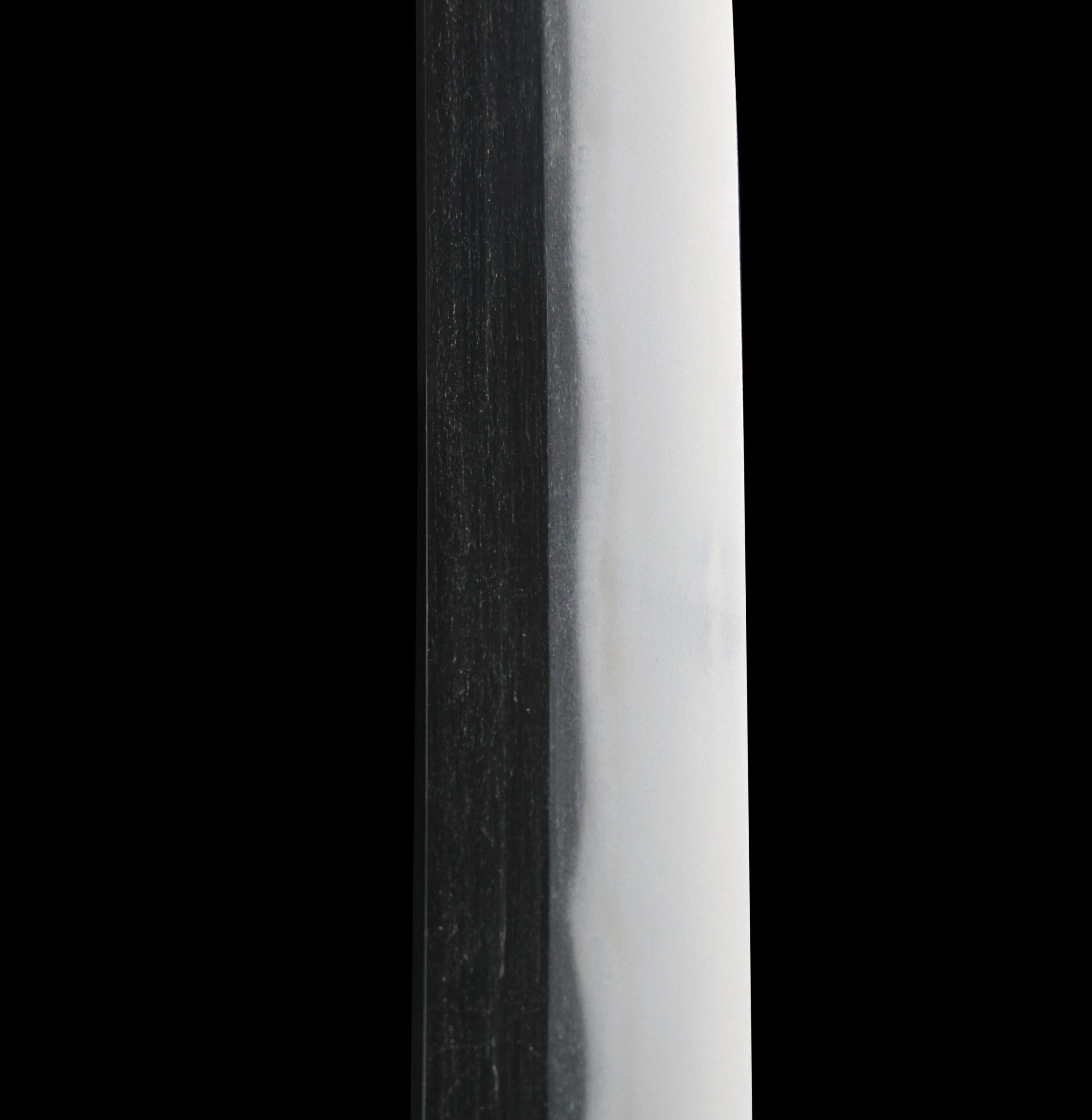 Japanese swordsmiths left the black rust on the tang because it prevents red rust while the tang is in its handle. And the discoloration of the tang was created over time, and it is a great indicator for a Japanese sword specialist to estimate when the sword was forged.