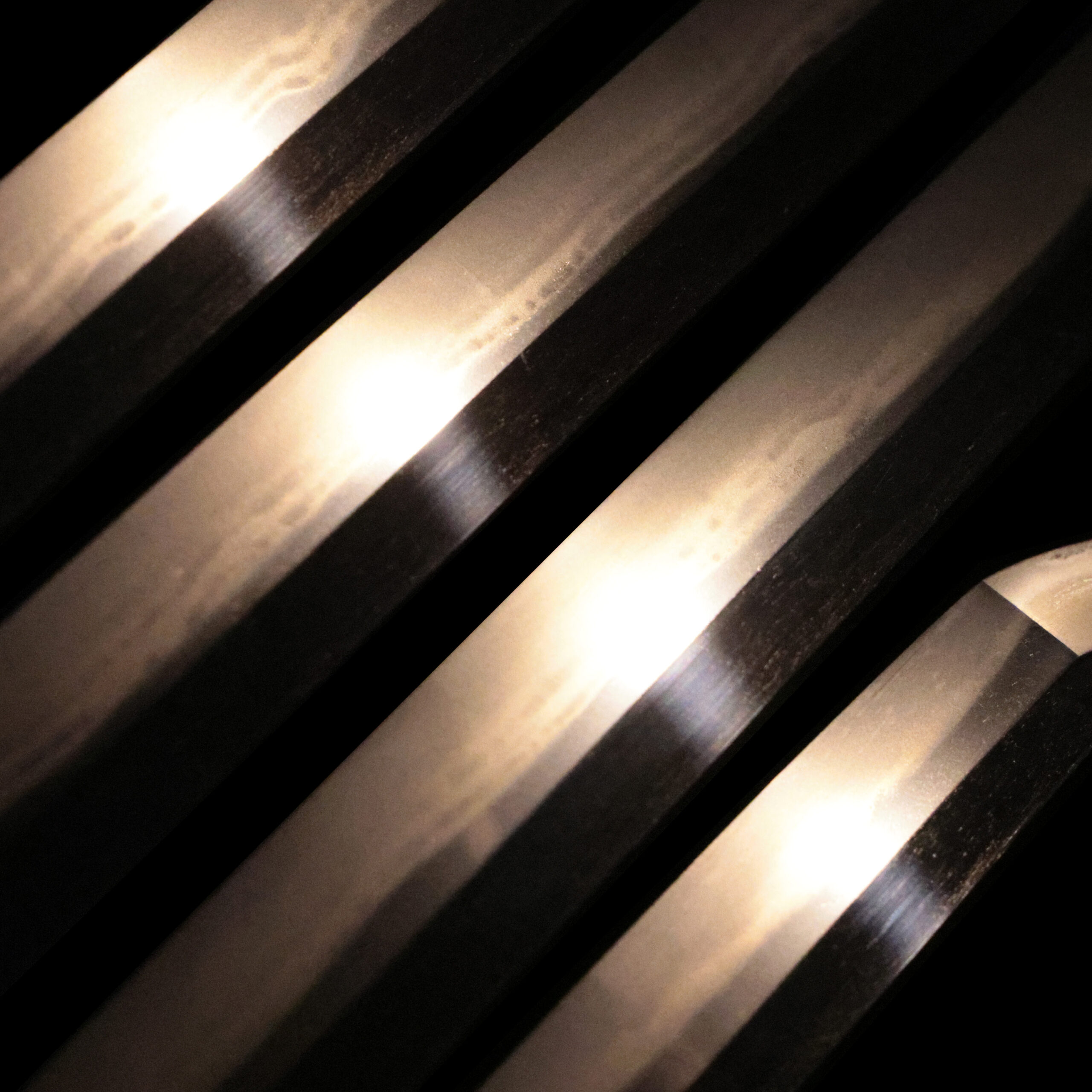 visible steel surface pattern created by folding and hammering during forging process