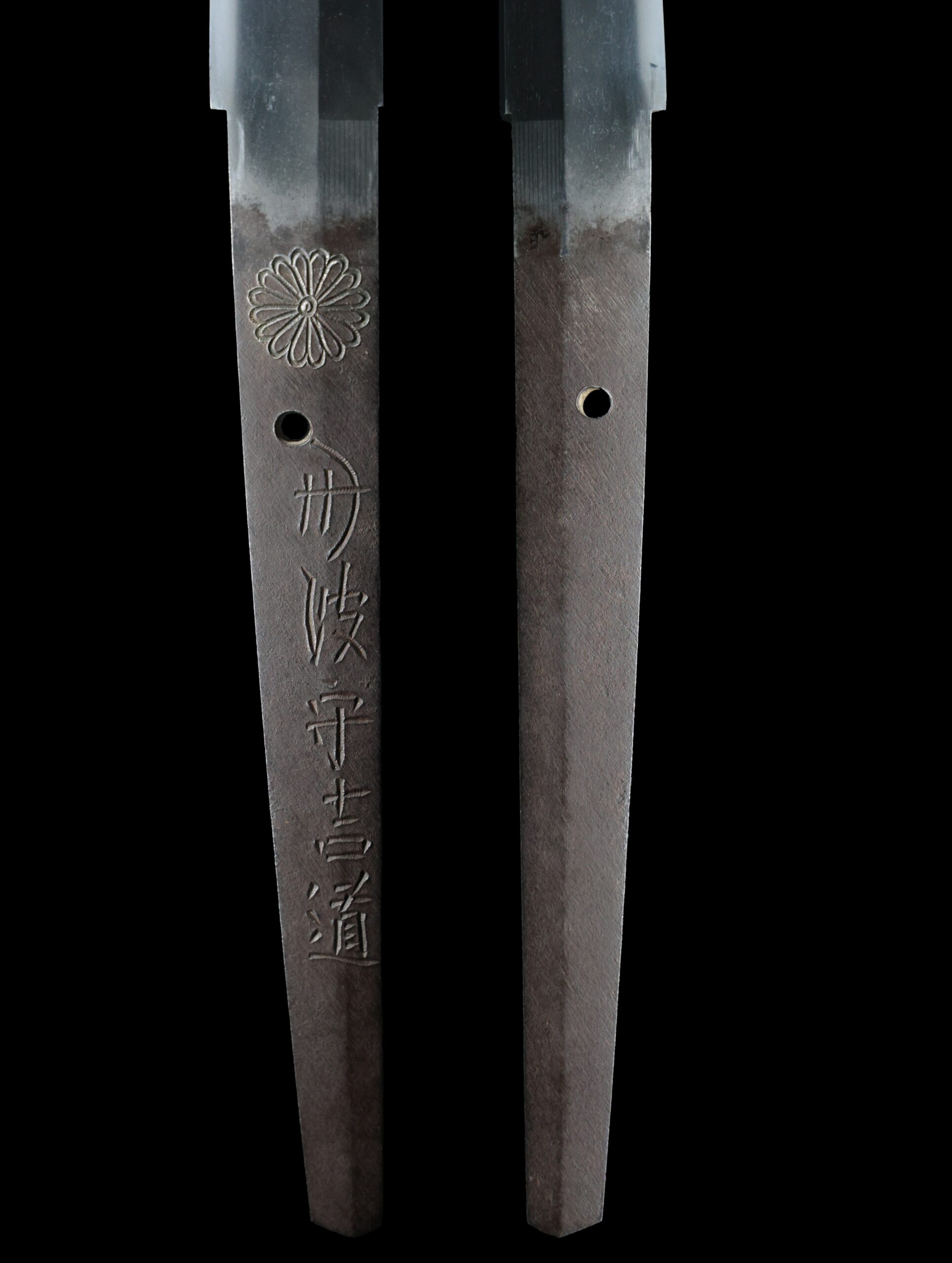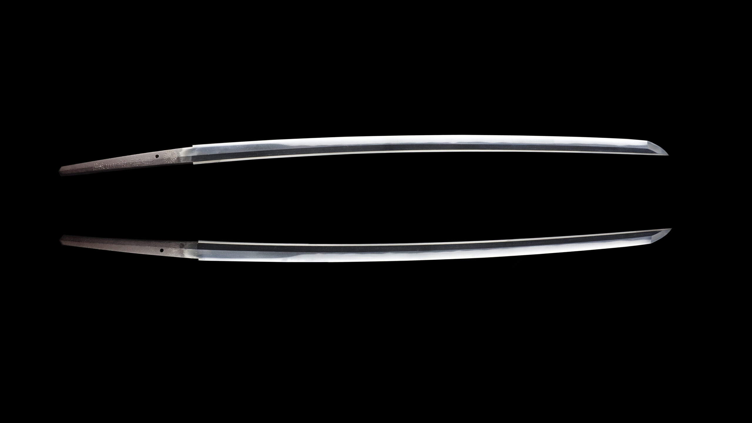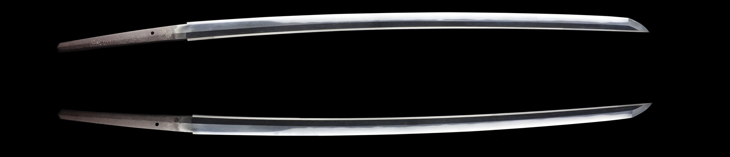 He was allowed to inscribe a chrysanthemum emblem, which is the symbol of the Japanese emperor. His sword forging technique was so great that the emperor permitted him to use this emblem, which was honorable for any swordsmith. A chrysanthemum emblem remains in the tang of this blade.