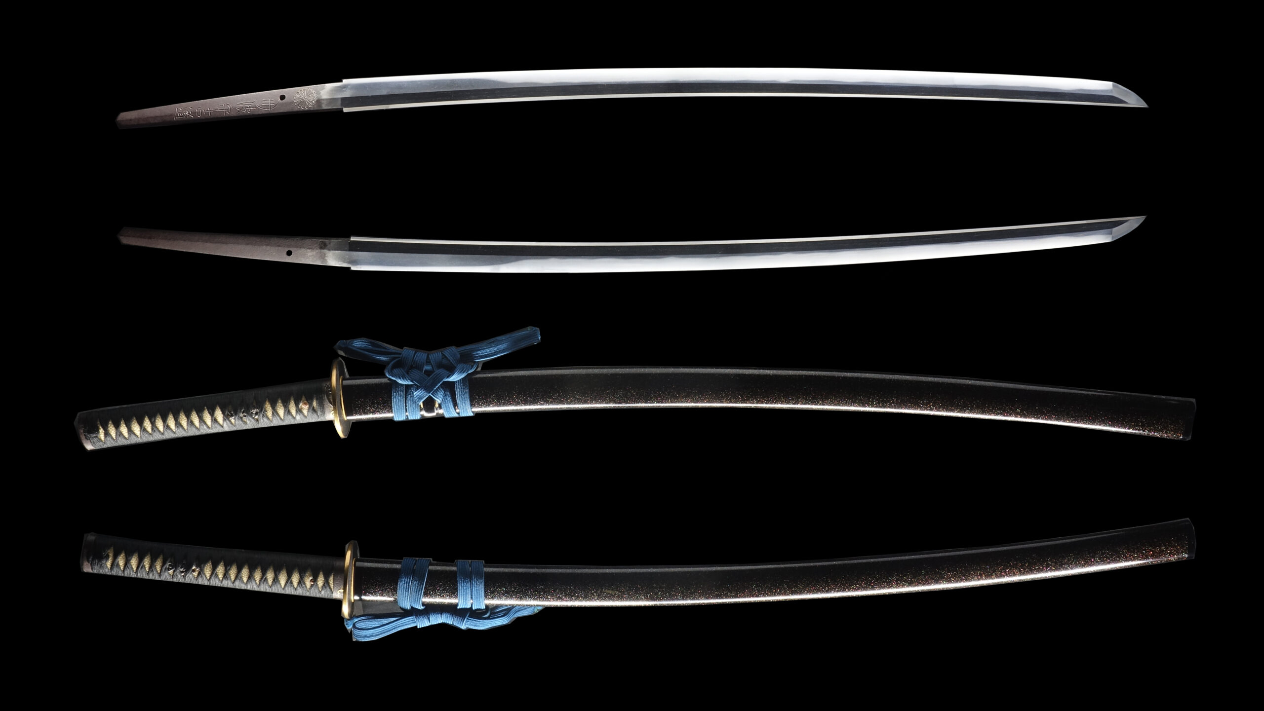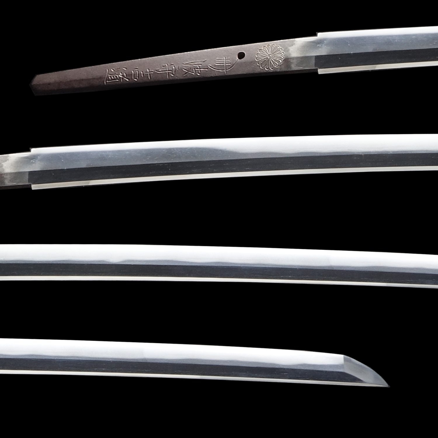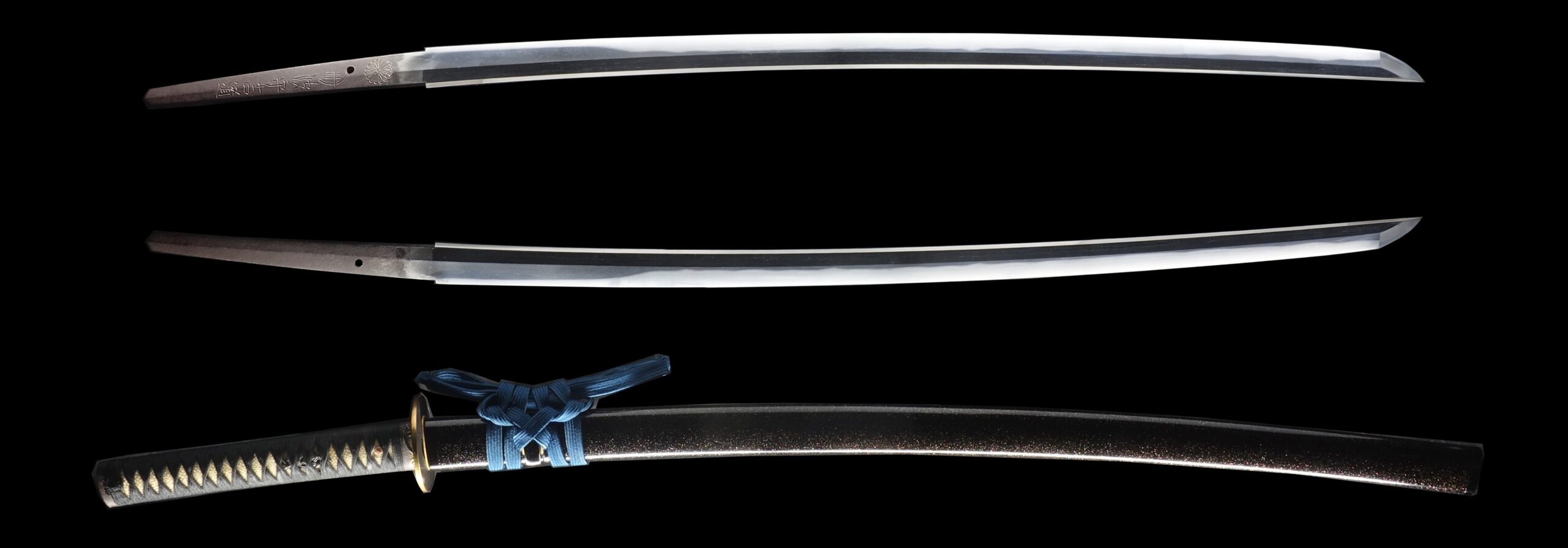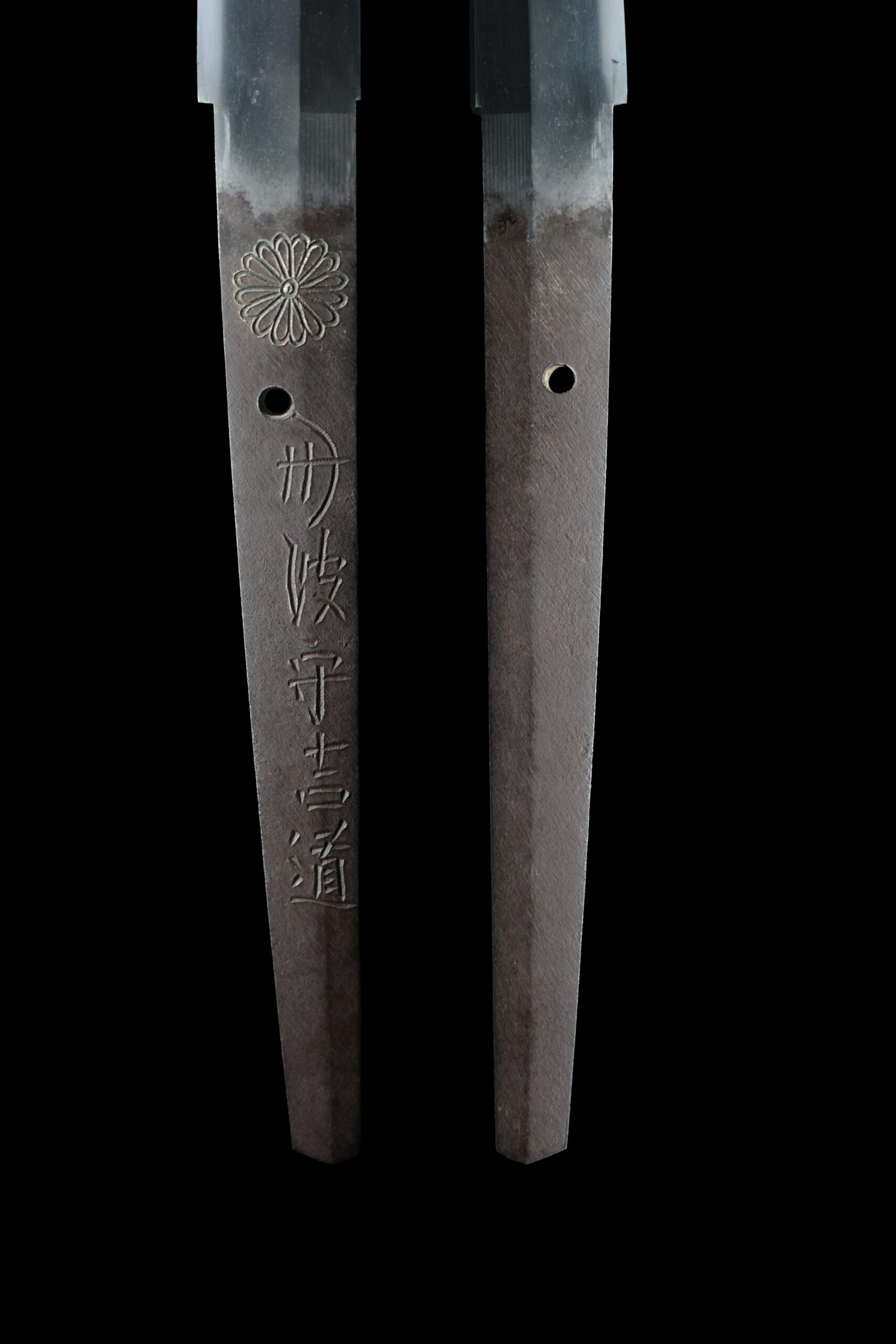 He was allowed to inscribe a chrysanthemum emblem, which is the symbol of the Japanese emperor. His sword forging technique was so great that the emperor permitted him to use this emblem, which was honorable for any swordsmith. A chrysanthemum emblem remains in the tang of this blade.