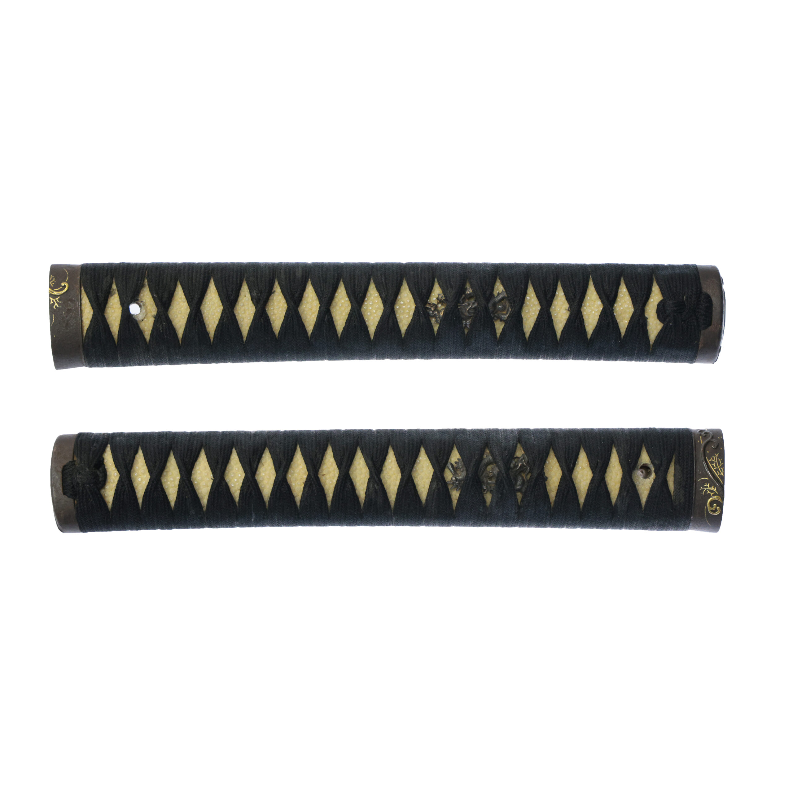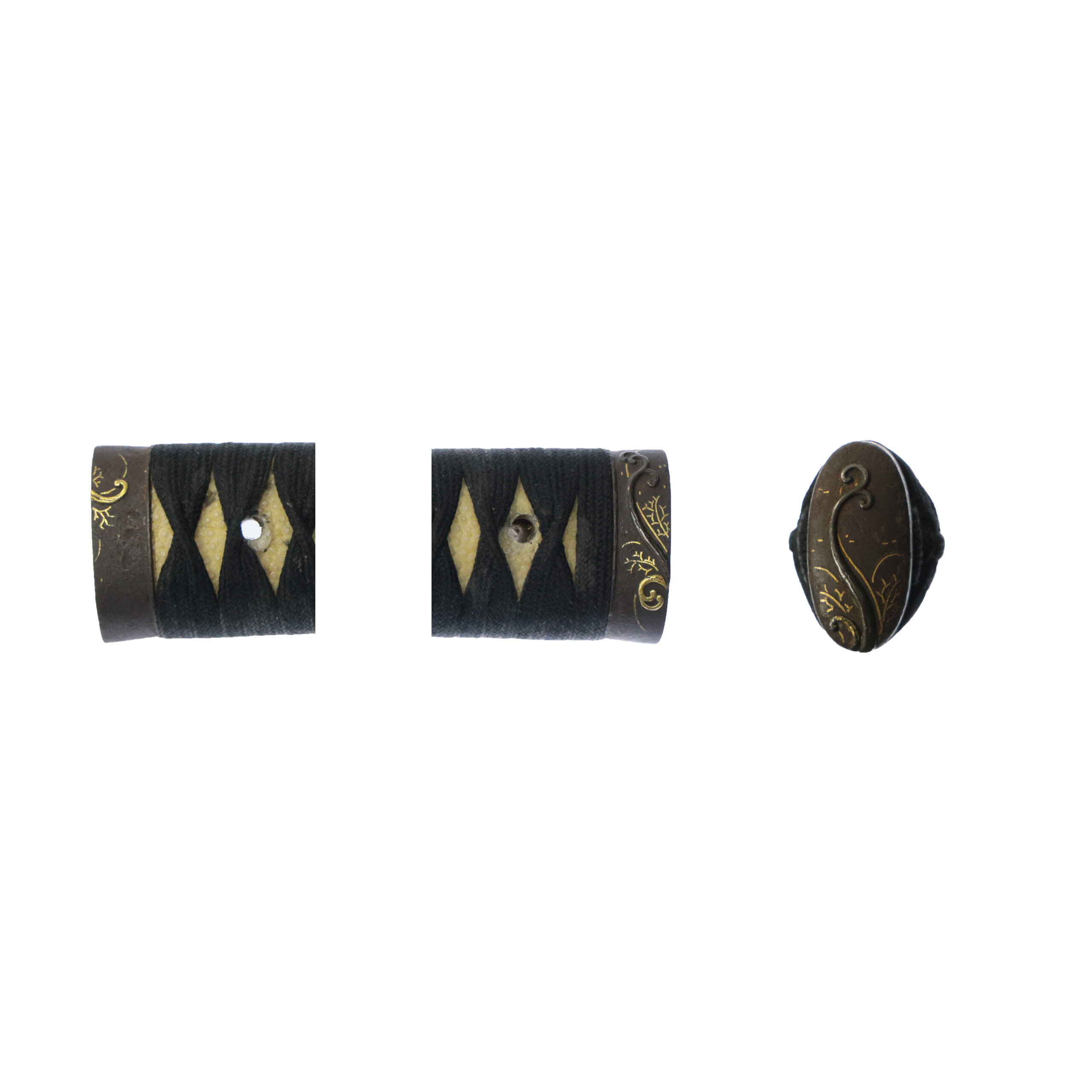 Fuchi-Kashira:A pair of matching sword fittings that cover the upper and bottom parts of its sword hilt.