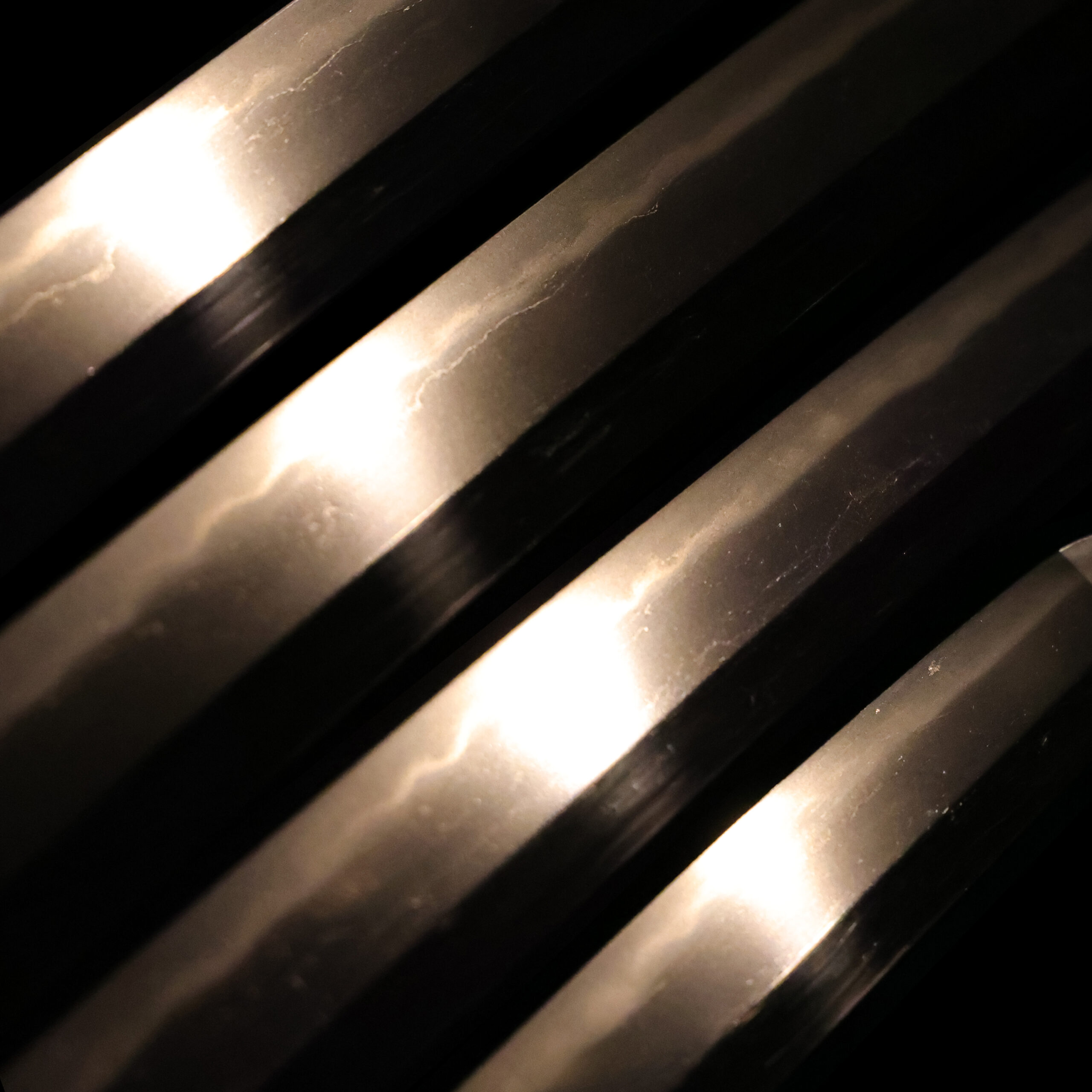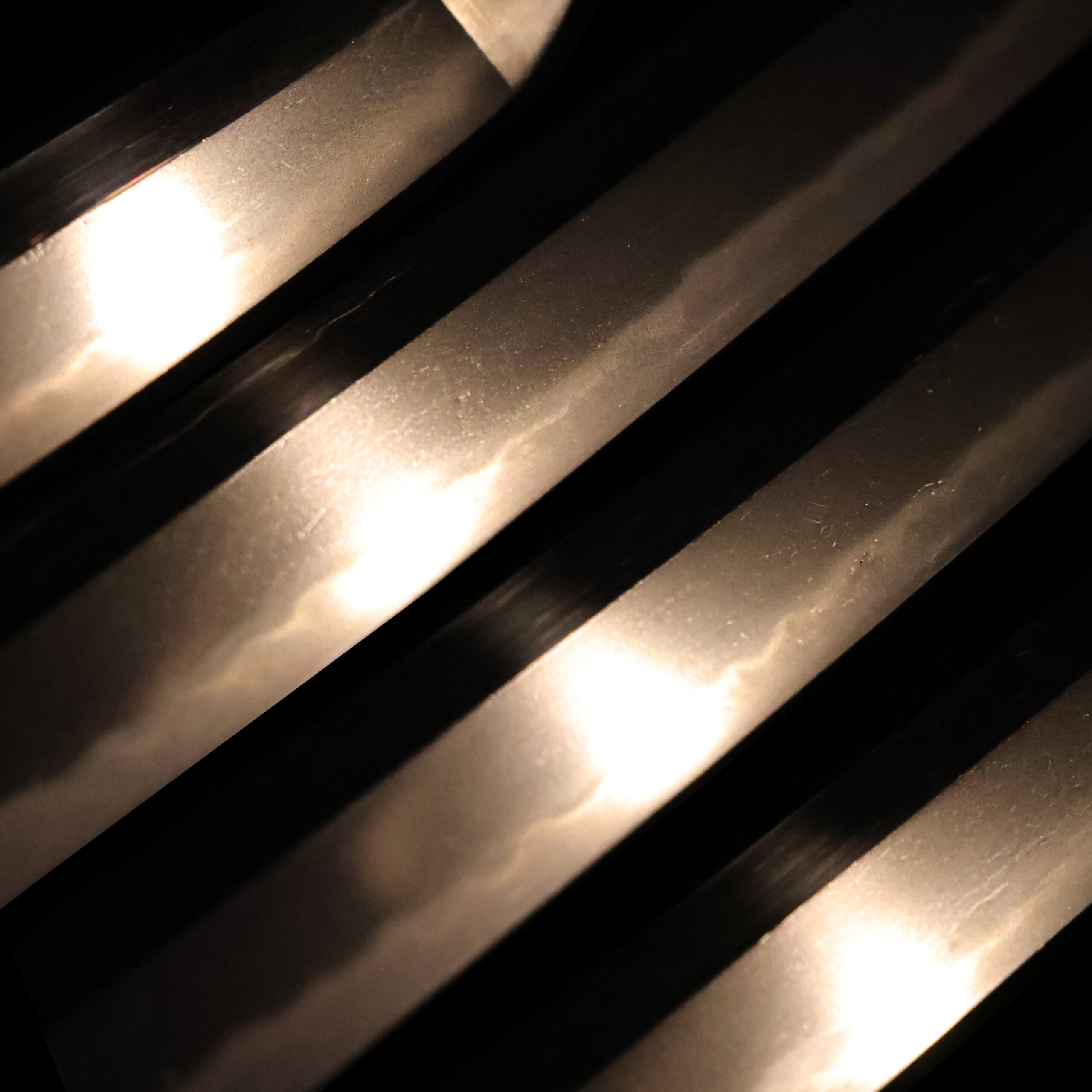 visible steel surface pattern created by folding and hammering during forging process