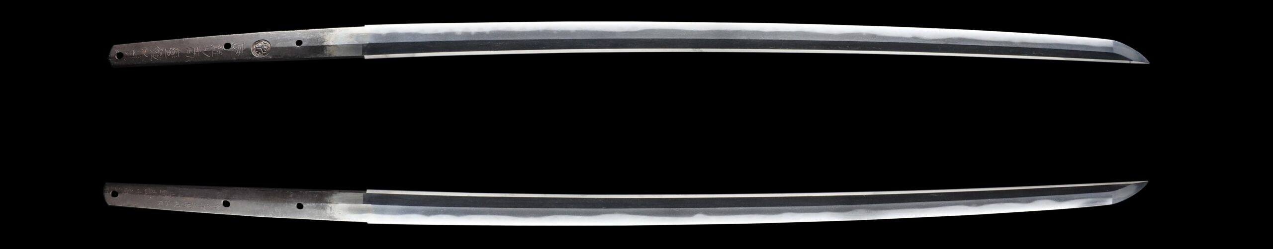 This sword bears a Saidan-mei (裁断銘), or cutting test inscription. A Saidan-mei is an inscription carved into a blade to record the result of an official cutting test conducted during the Edo period. Such tests were performed to evaluate the sword’s cutting performance and were an important factor in determining a blade’s reputation and value.
