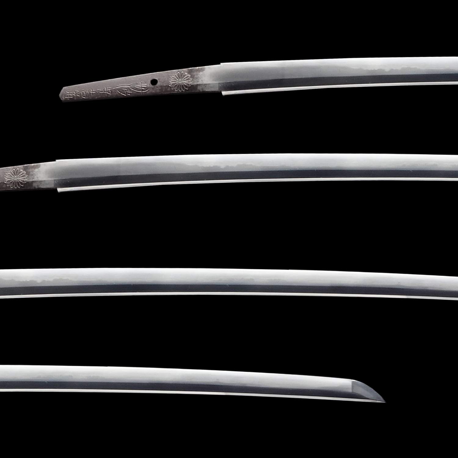 The third-gen was allowed to inscribe a chrysanthemum emblem, which is the symbol of the Japanese emperor. Their sword forging technique was so great that the emperor permitted him to use this emblem, which was honorable for any swordsmith. This blade has this chrysanthemum emblem.