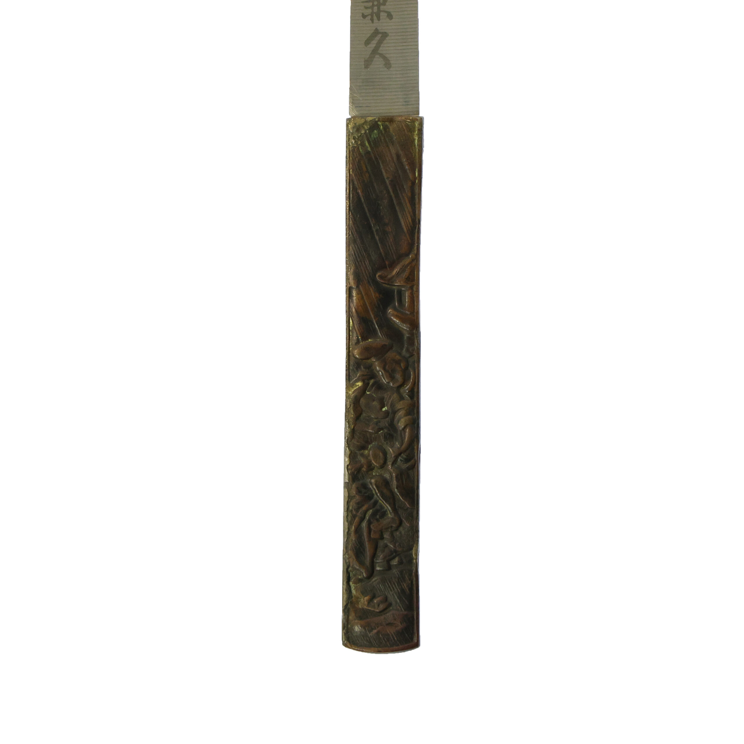 This kozuka features a figure depicted in traditional attire, and the headwear worn by the figure is believed to be an eboshi (烏帽子).