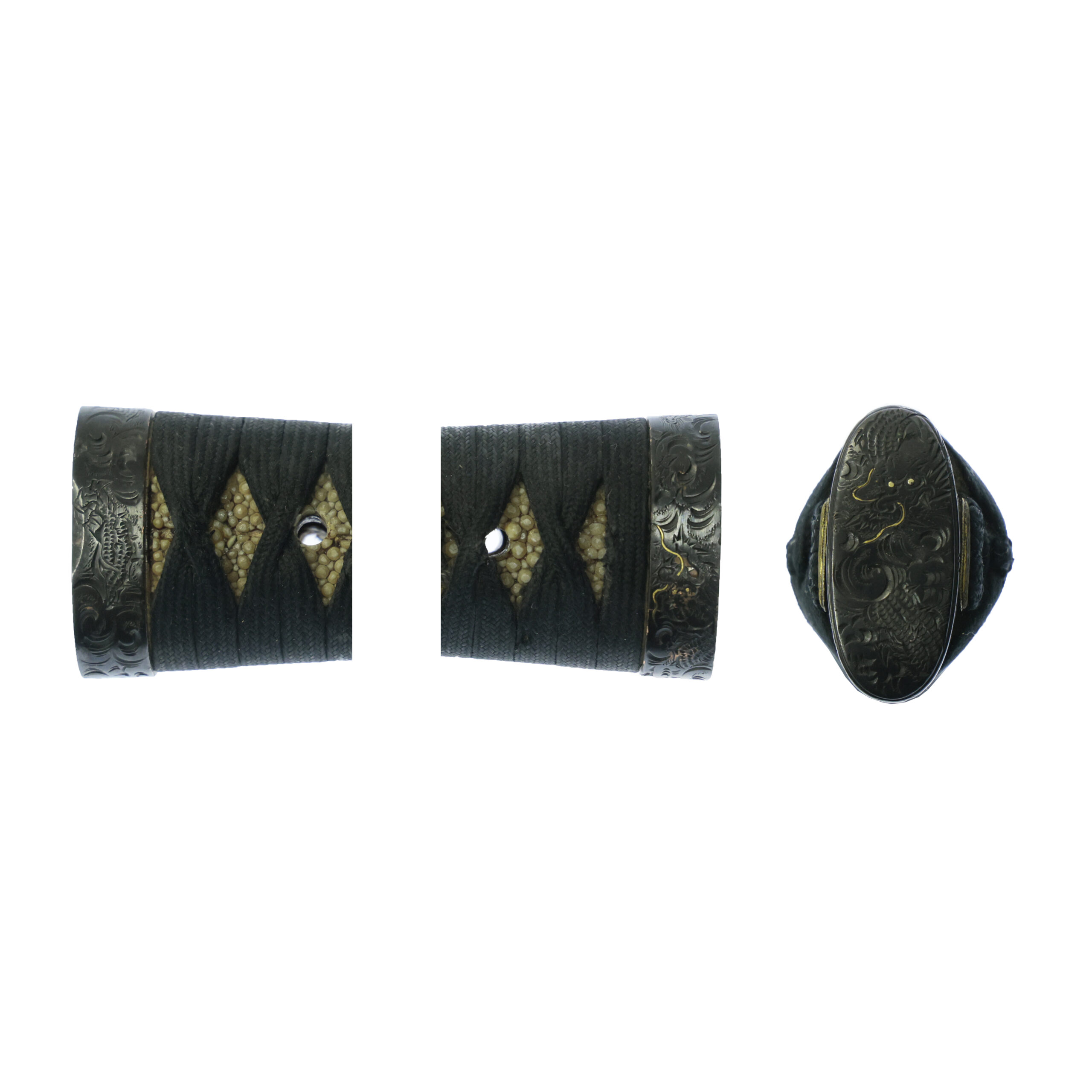 Tsuka and Menuki: Tsuka is the handle of the Japanese sword and Menuki is its decoration.