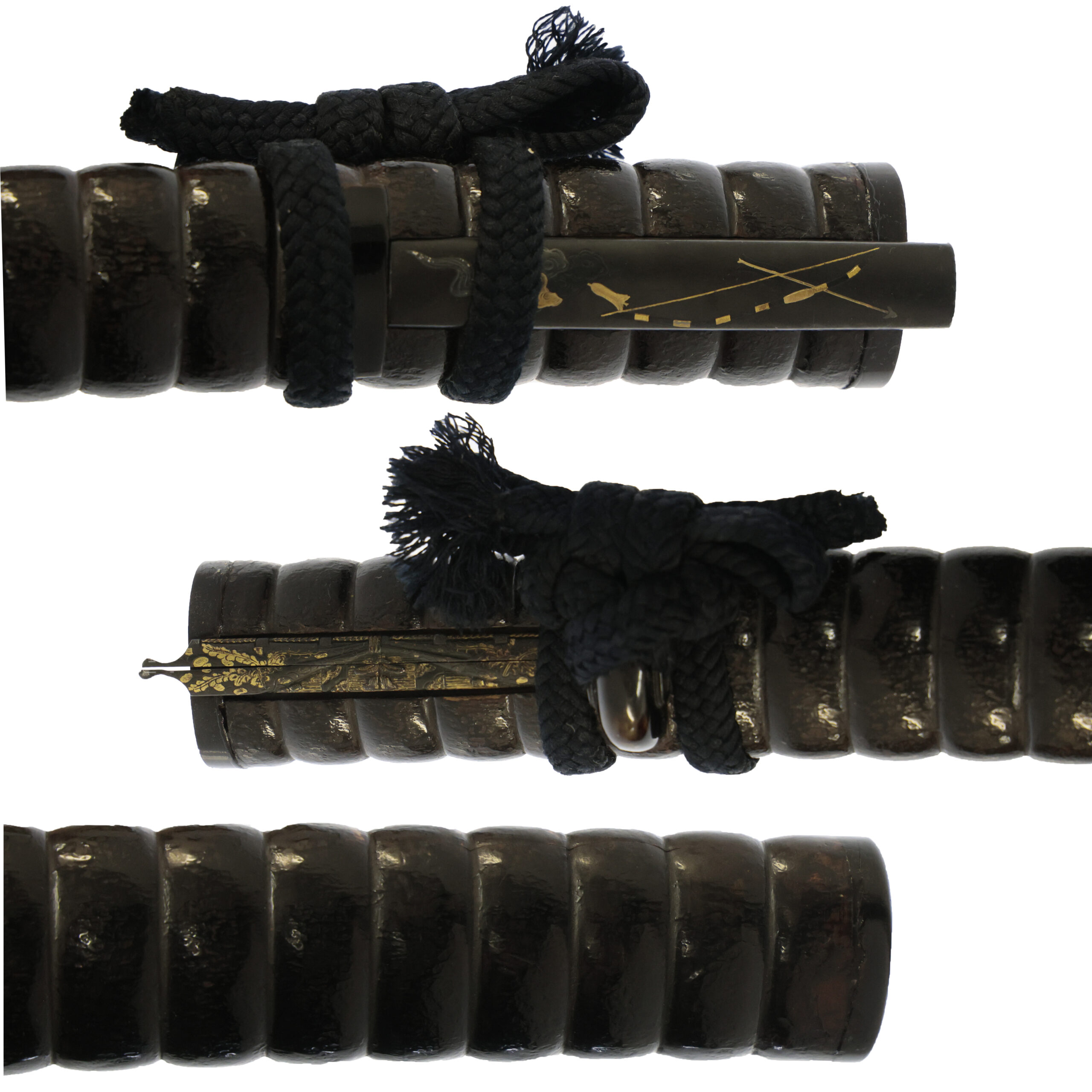 Fuchi-Kashira: A pair of matching sword fittings that cover the upper and bottom parts of its sword hilt.