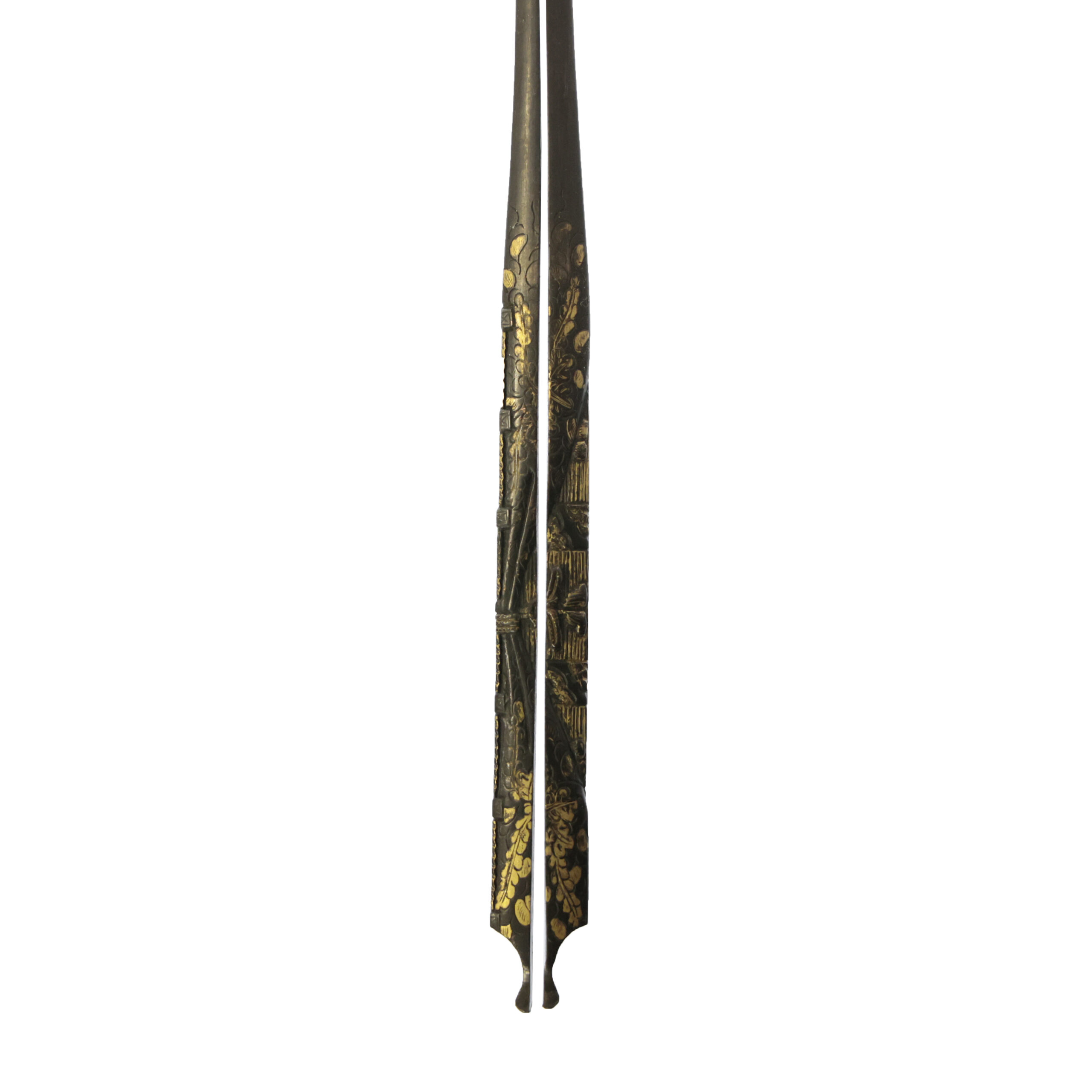 The design of this Kozuka depicts a bow and arrow (yumi-ya, 弓矢), once one of the primary traditional weapons of the samurai. In addition to its role in warfare, the yumi-ya was believed to have the power to drive away evil spirits from the home. During the Edo period, miniature bows and arrows were often given to baby boys as their first New Year’s gift, symbolizing the wish that they would grow up to become honorable and courageous samurai warriors.