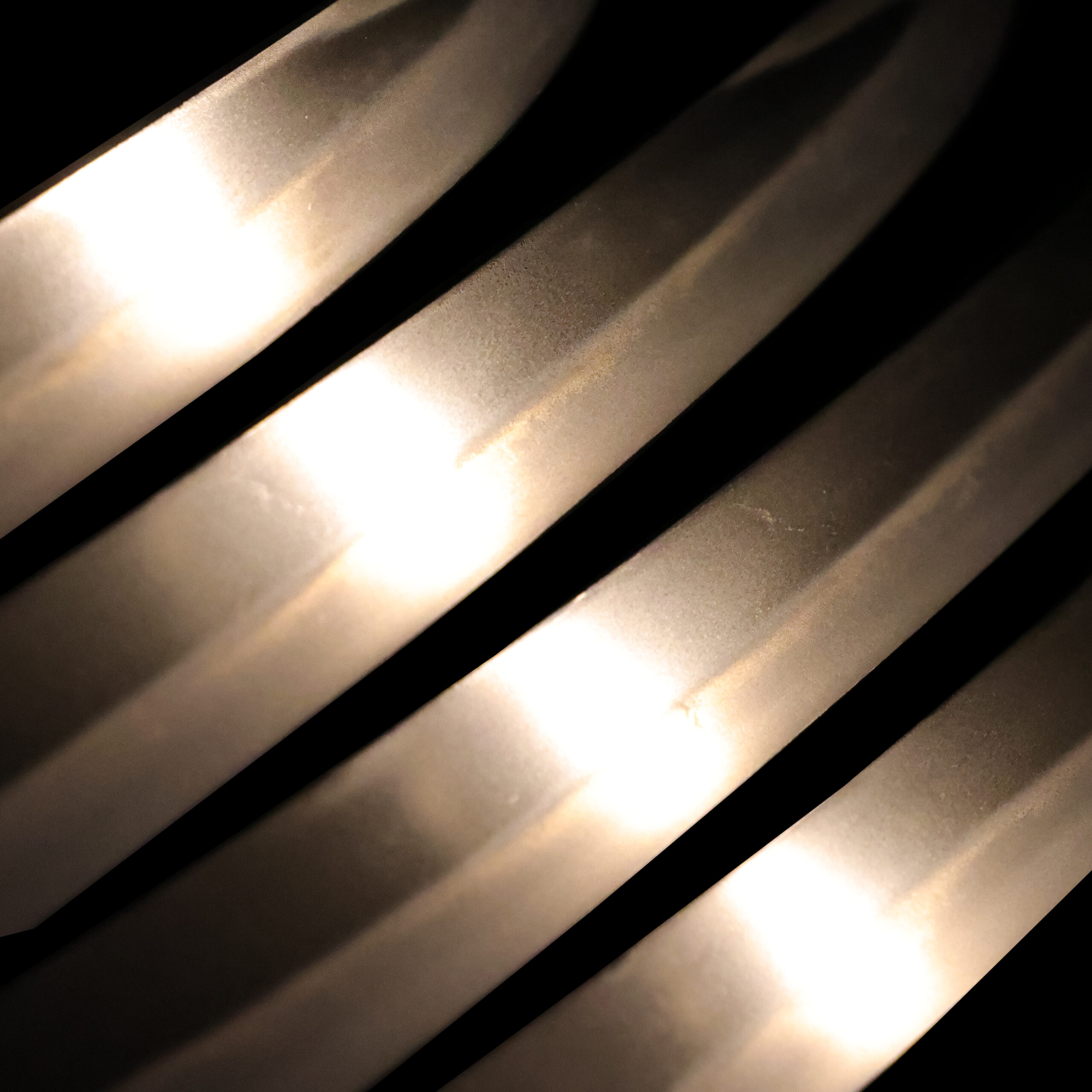 One of the most notable characteristics of Osaka Shinto is its beauty in Jigane. Jigane is a visible steel surface pattern created by folding and hammering during the forging process), which made it possible by the location of Osaka. Osaka had close access to the Tamahagane(special carbon steel to make Japanese swords) production sites. The swordsmiths residing in Osaka were able to get high-quality carbon steel from these sites.